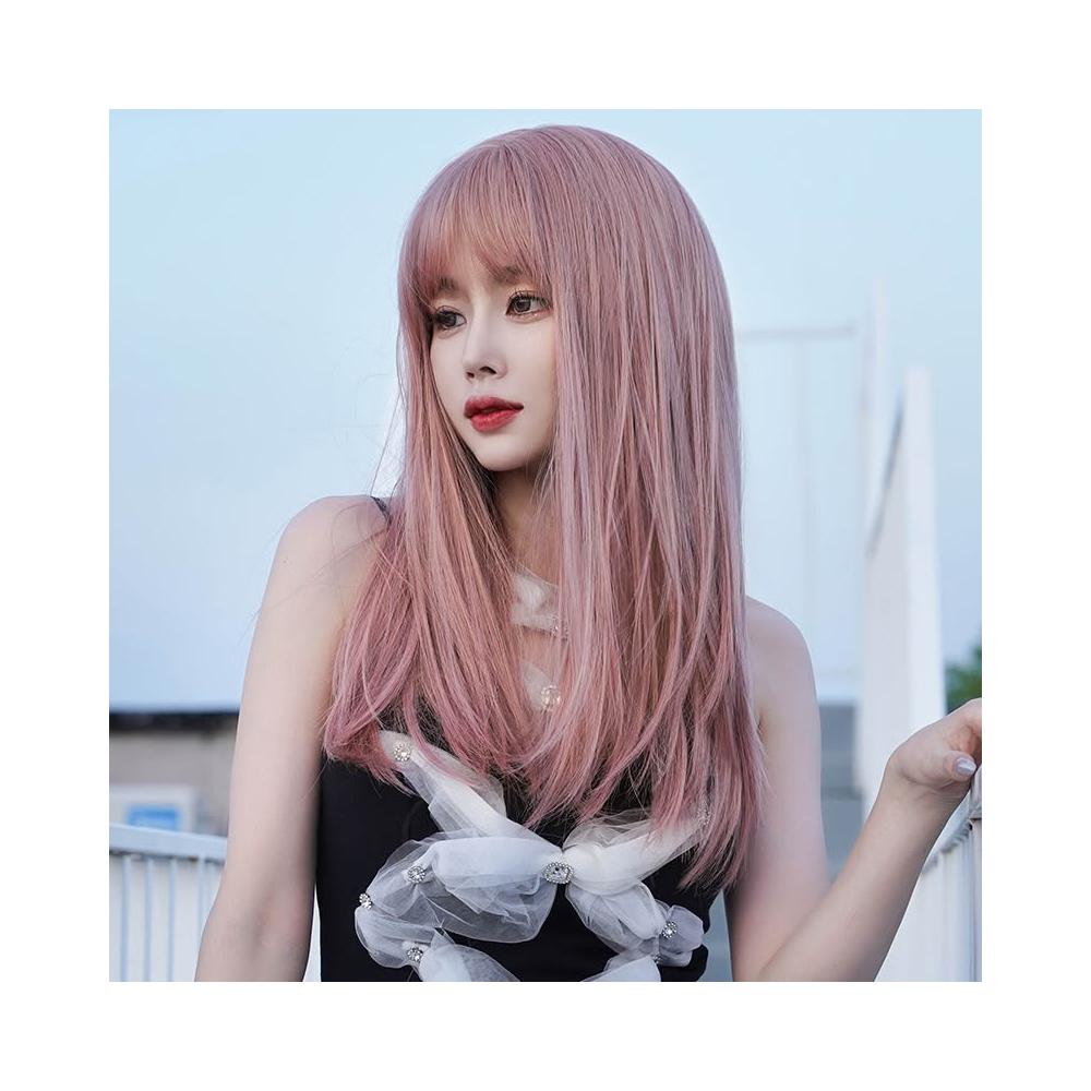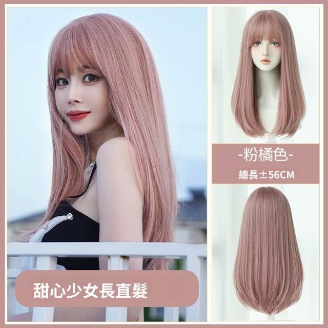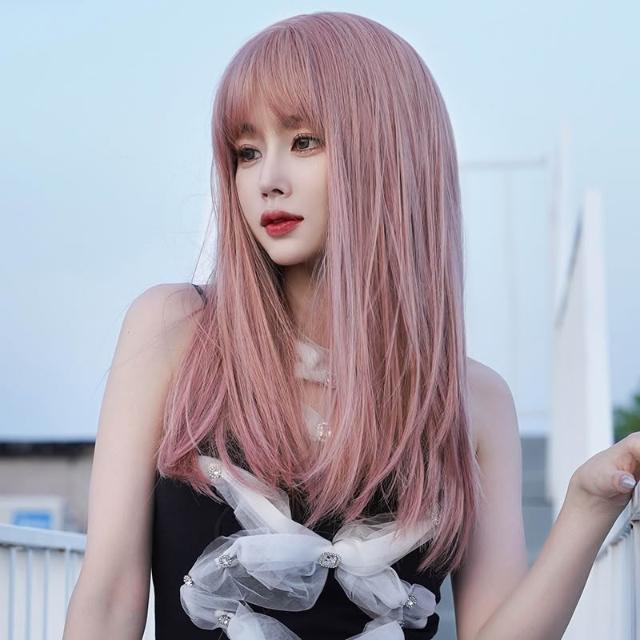 假髮 接髮 髮塊 假發女長發全頭套式網紅長直發空氣劉海粉色假發套時尚假發批發 煦煦衣櫥