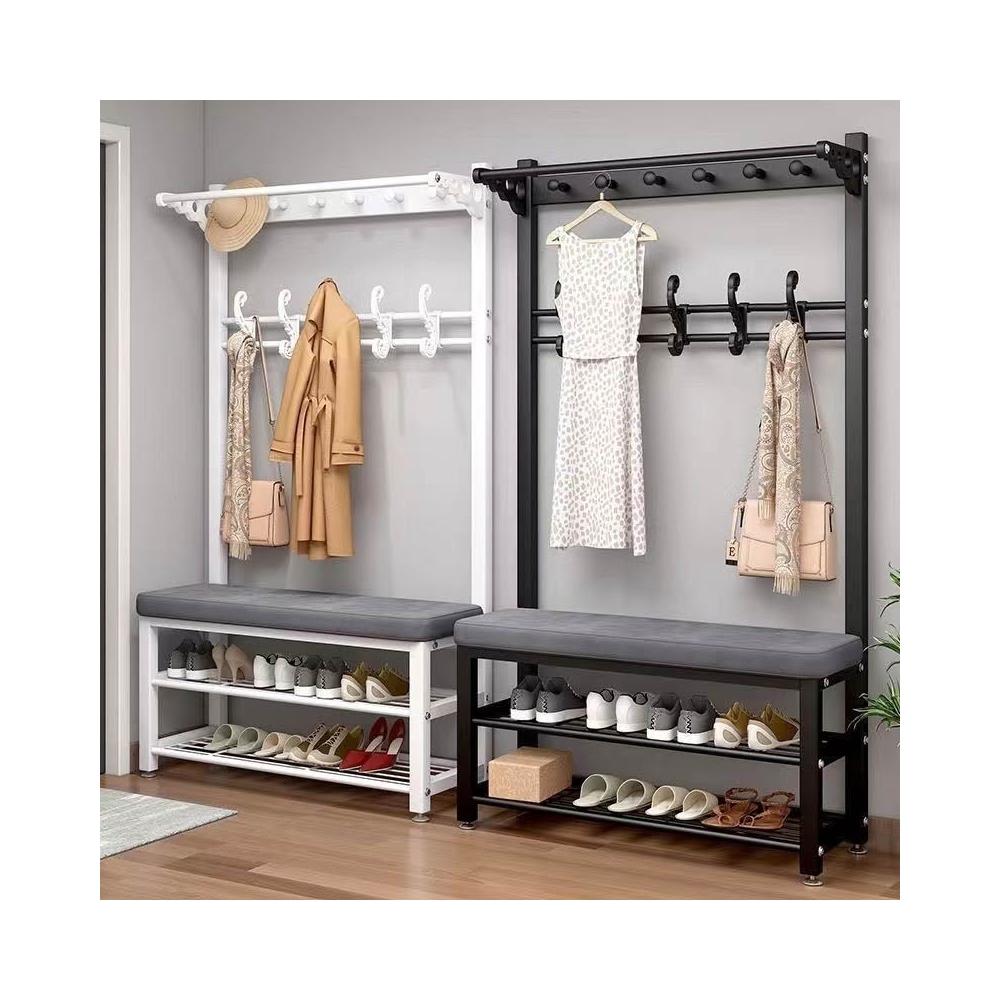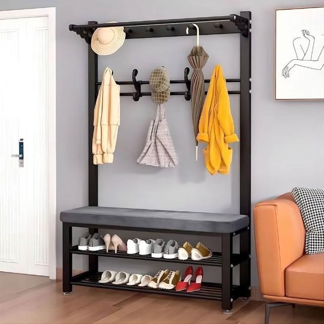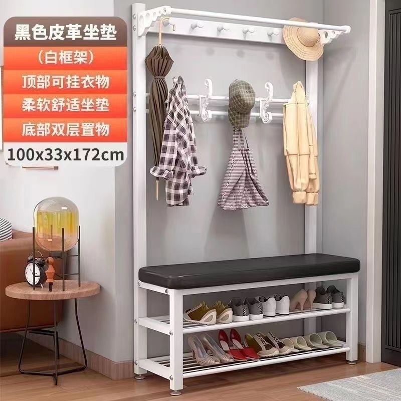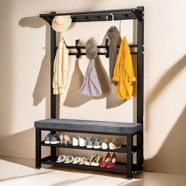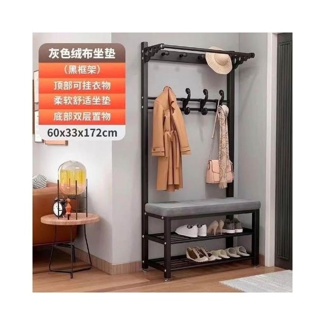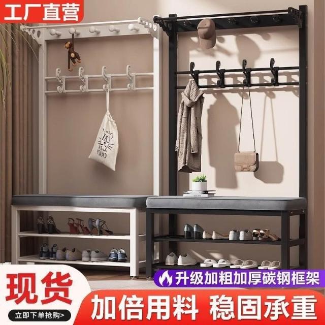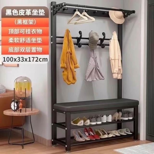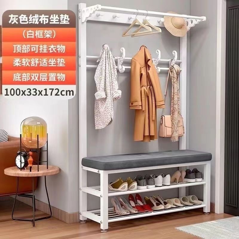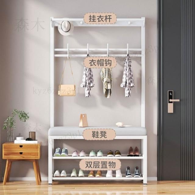 換鞋凳衣帽架落地臥室傢用多功能掛衣服架可坐簡易門口置物架鞋架掛衣架 吊衣架 簡易衣櫃 帽架 收納層架