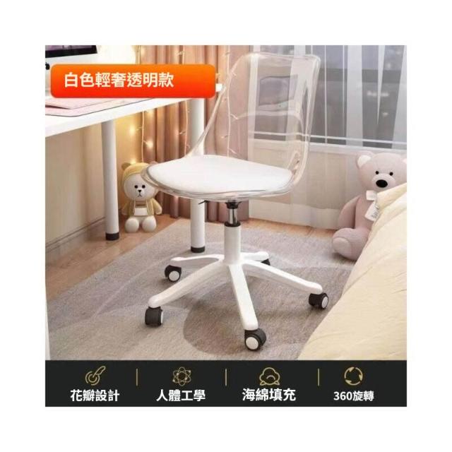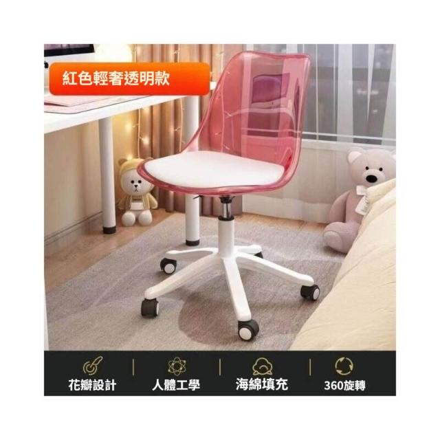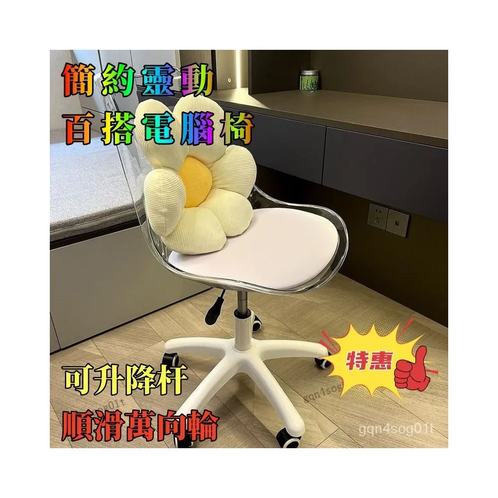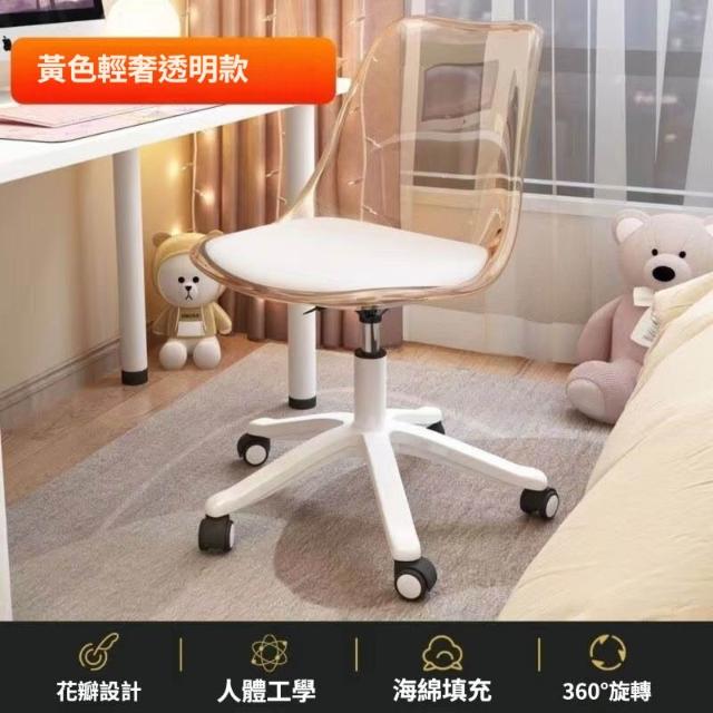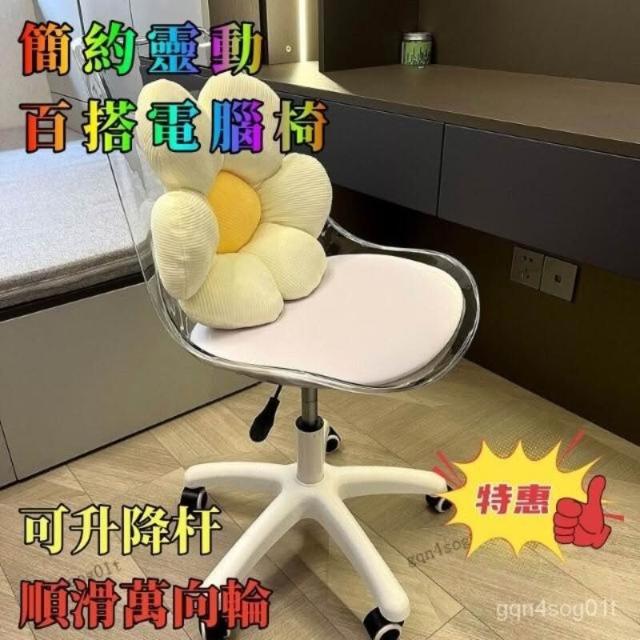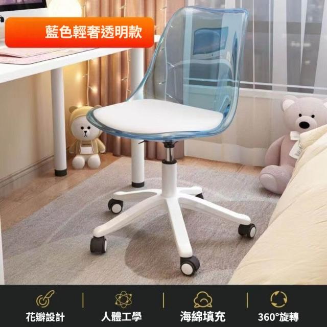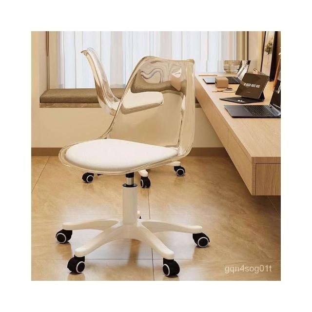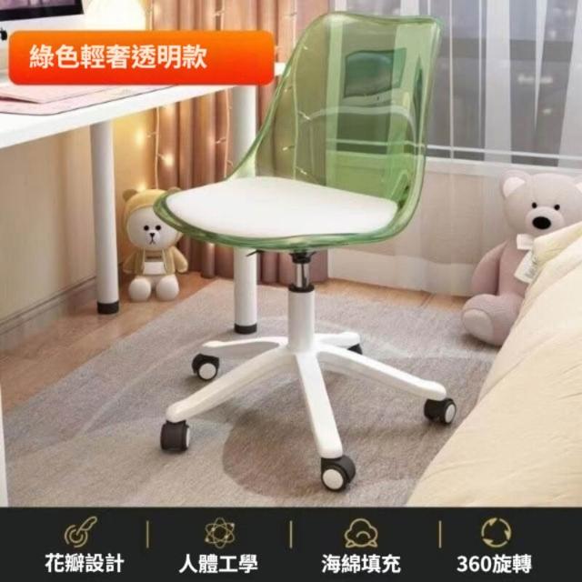 電腦椅 傢用舒適女生化妝凳 書桌椅 亞力剋靠背透明椅子 可移動椅 升降椅 滑輪椅