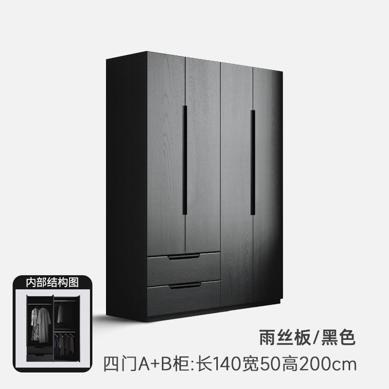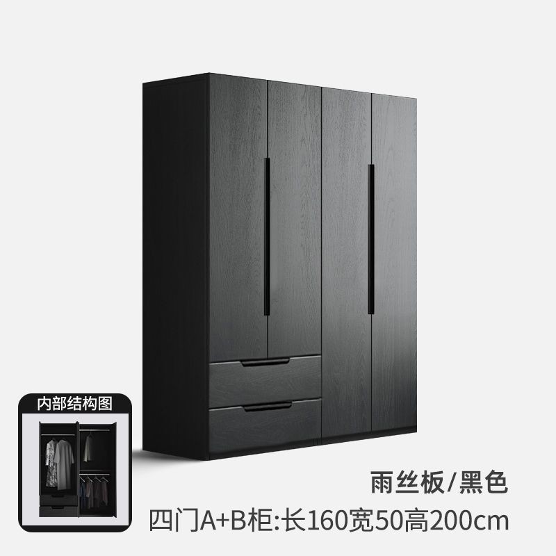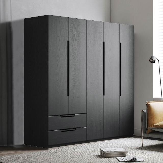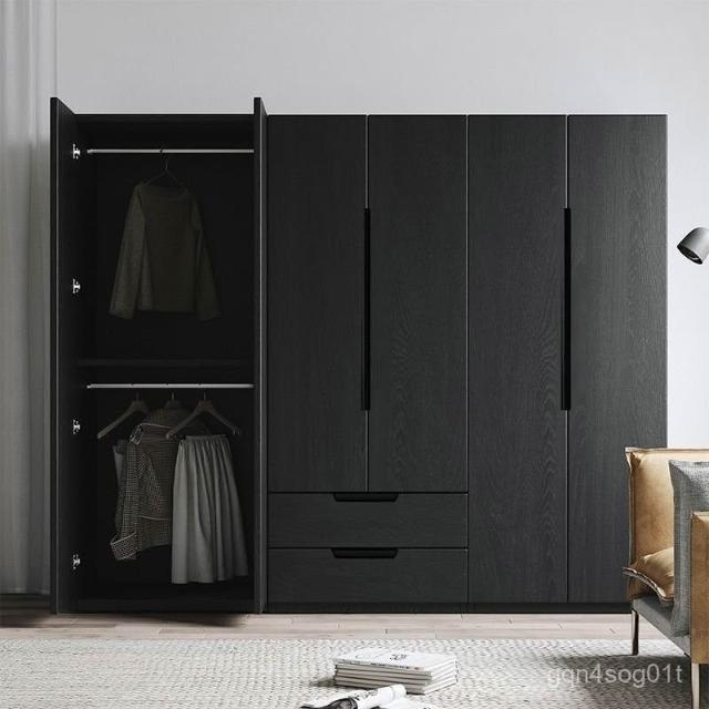 衣櫃北歐複古黑色臥室大衣櫃家用三門四門大衣櫥收納櫃