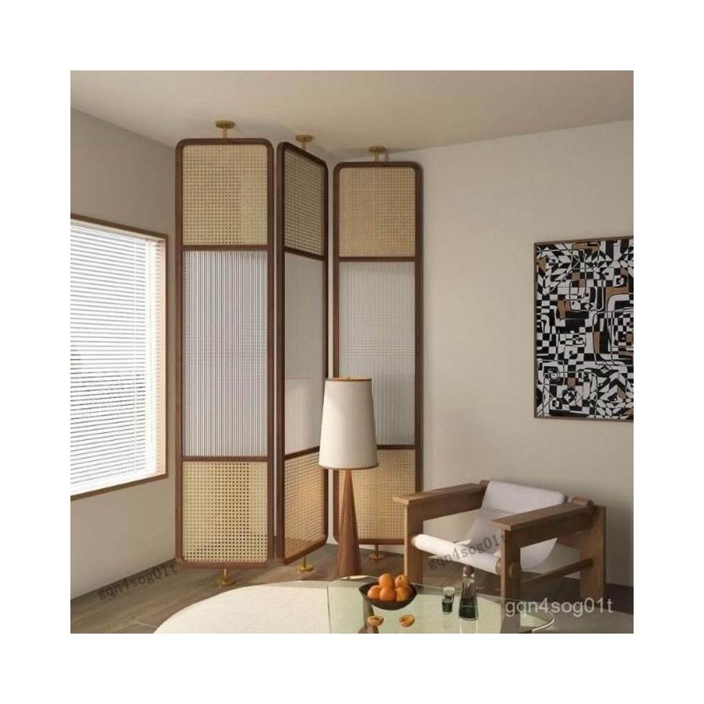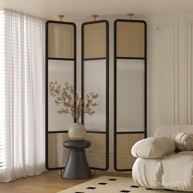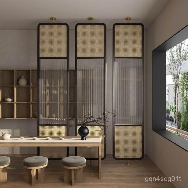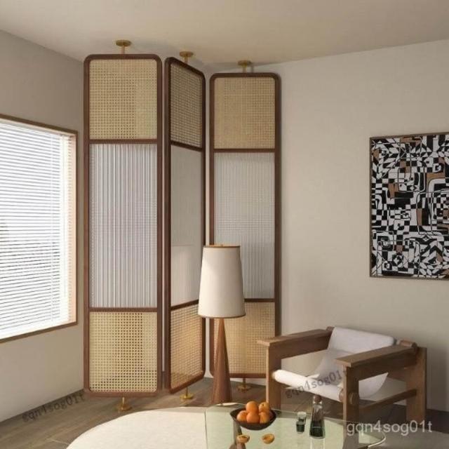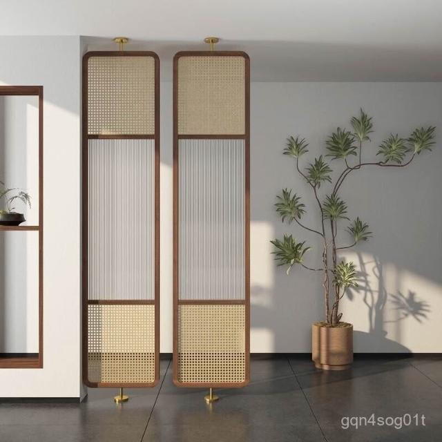旋轉酒店定製屏風藤編實木頂天立地玻璃隔斷新中式客廳家用臥室