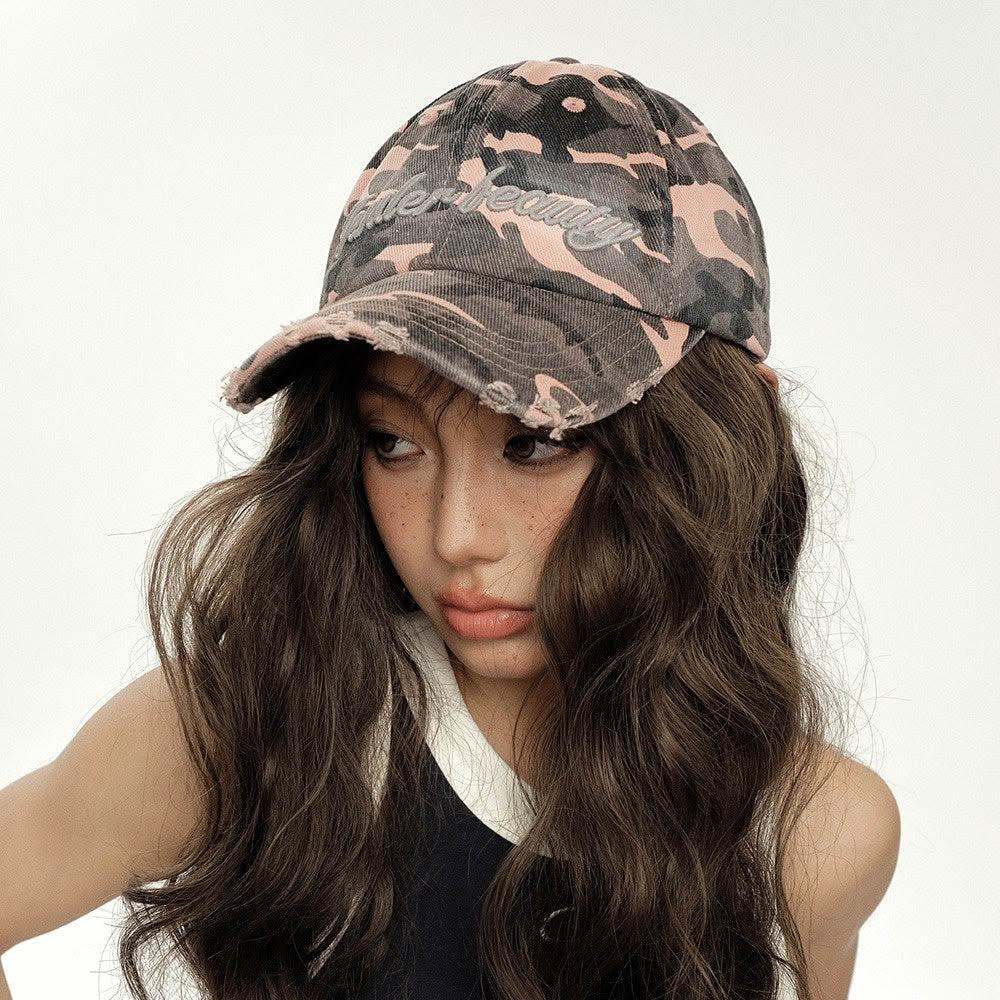 MAT RETRO美式戶外工裝甜酷辣穿搭粉色迷彩鴨舌帽子女復古潮牌顯臉小棒球帽