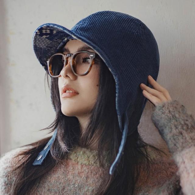 MAT RETRO復古燈芯絨加厚防風防寒保暖飛行員藍色護耳雷鋒帽子女士冬