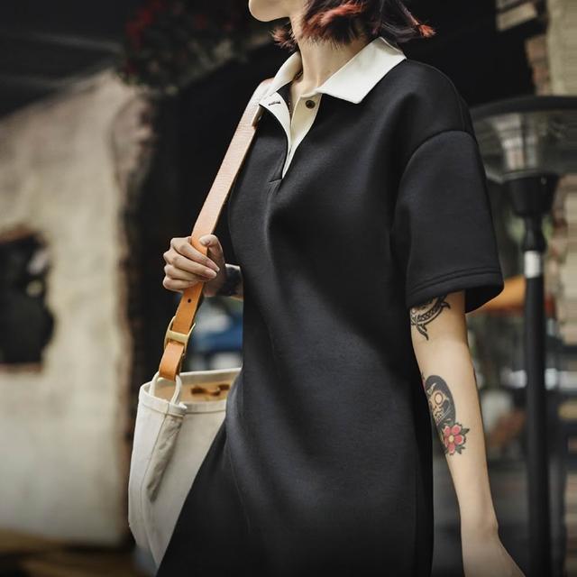 MAT RETRO夏日格雷系高智感短袖polo裙空氣層學院風梨型身材連衣裙女