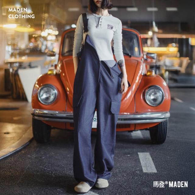 MAT RETRO高腰牛仔直筒闊腿寬鬆弛工裝背帶褲無袖吊帶長款連衣褲女士秋