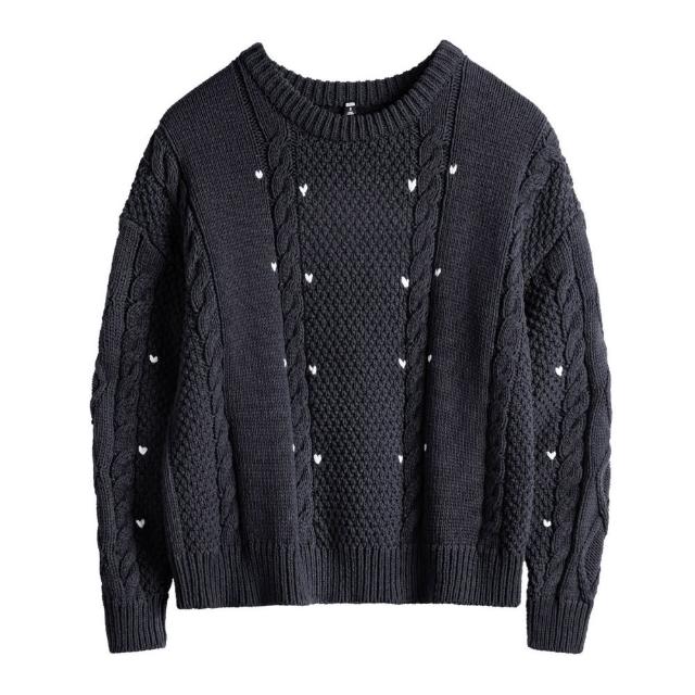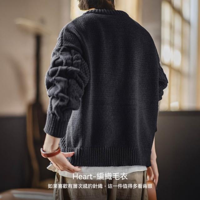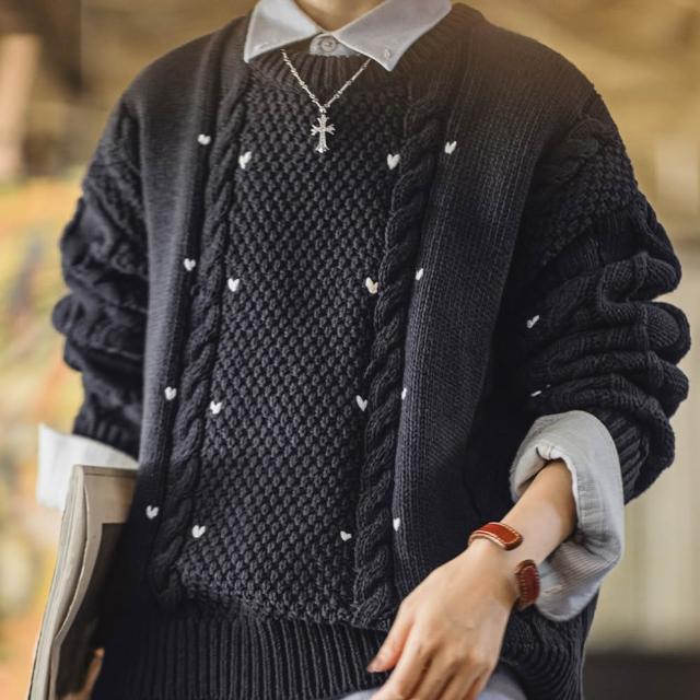 MAT RETRO藍色圓領寬鬆加厚保暖套頭外穿粗麻花毛線針織上毛衣女士秋冬