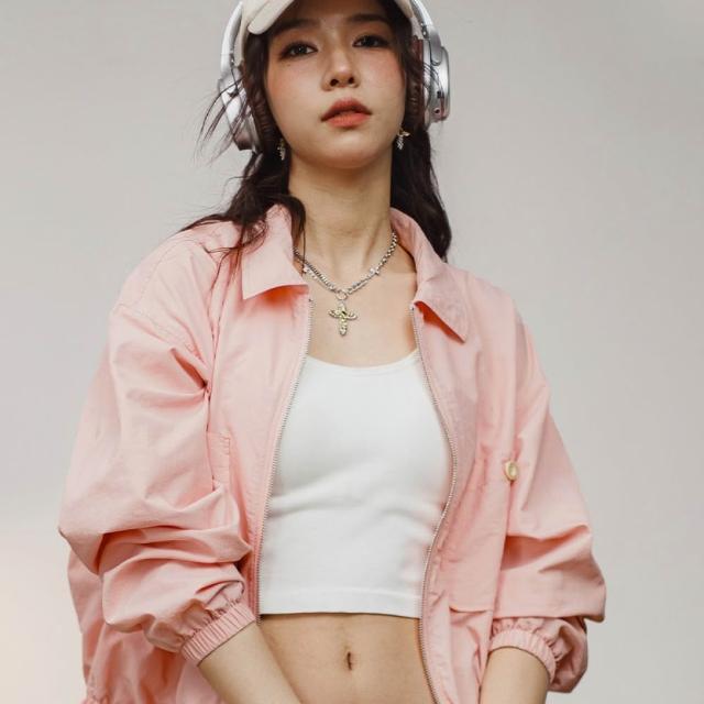MAT RETRO美式vintage棒球領夾克短款設計感粉色棒球服外套機車上衣女