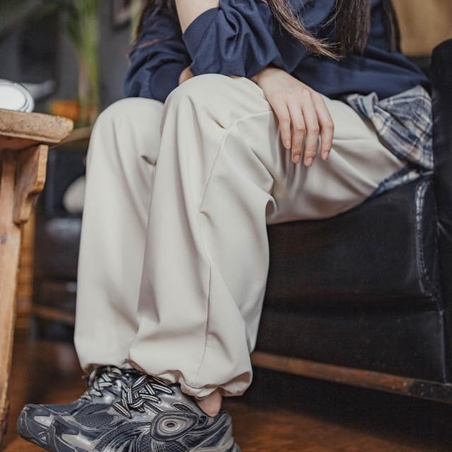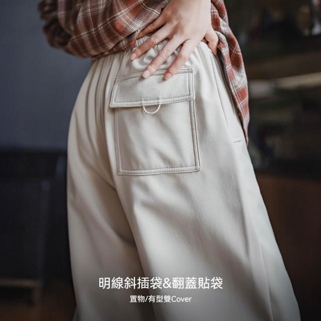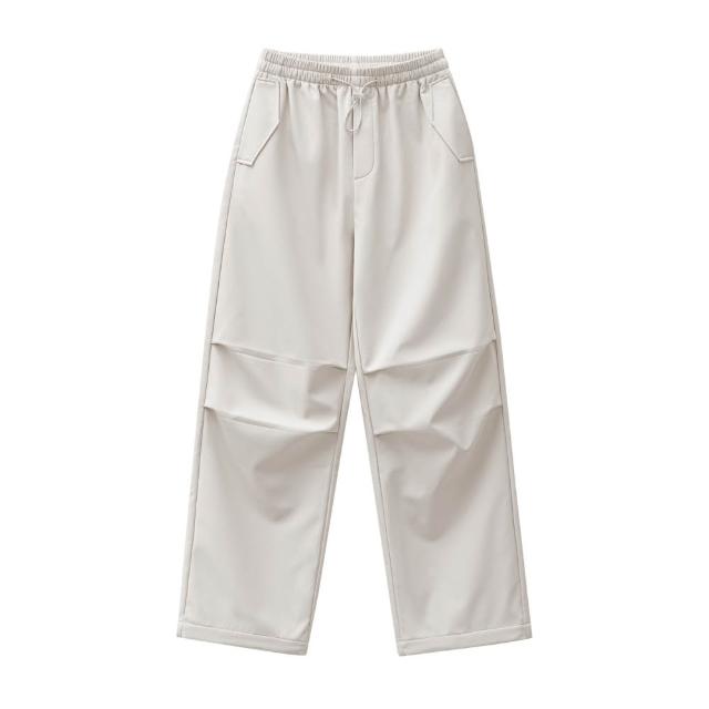 MAT RETRO米白色加絨厚實保暖休閒褶皺工裝傘兵直筒闊腿長褲子女士秋冬