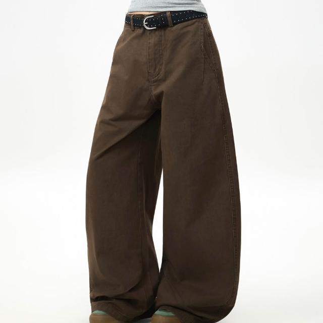 MAT RETRO美式復古水洗棕色牛仔褲女寬鬆闊腿潮牌嘻哈街舞褲子