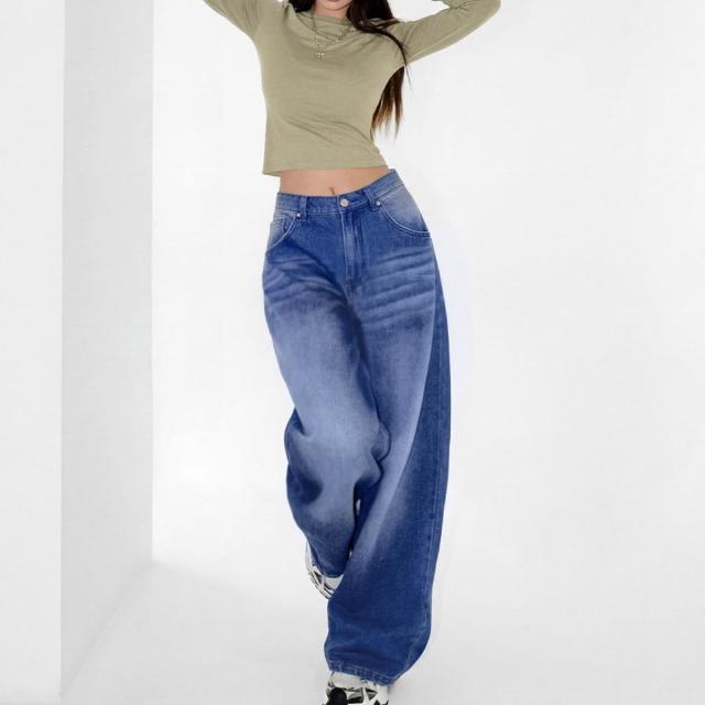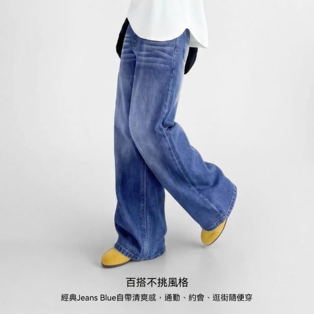 MAT RETRO丹寧深藍色復古直筒闊腿水洗牛仔褲全純棉拖地長褲女士春秋