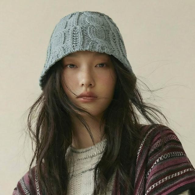 MAT RETRO白色針織鏤空編織毛線漁夫帽大頭圍圓頂水桶立體盆帽子女士春