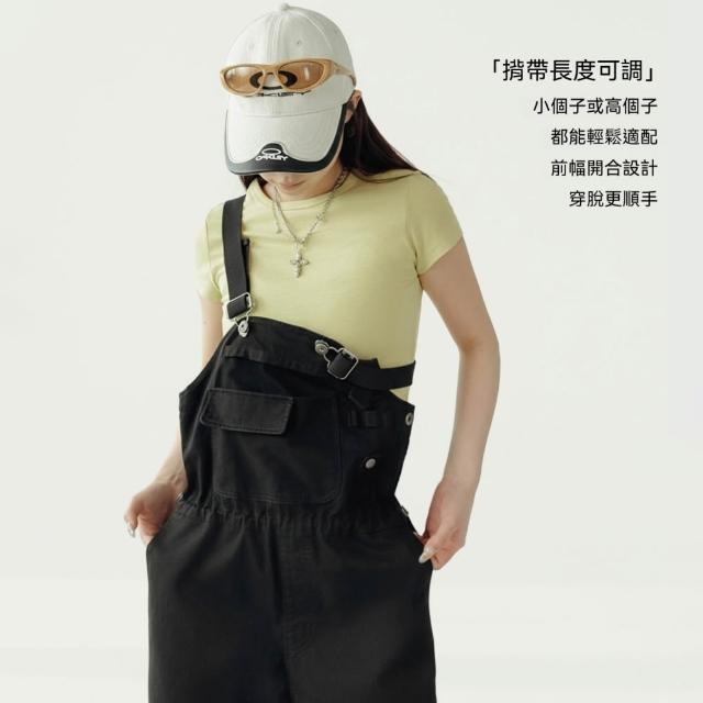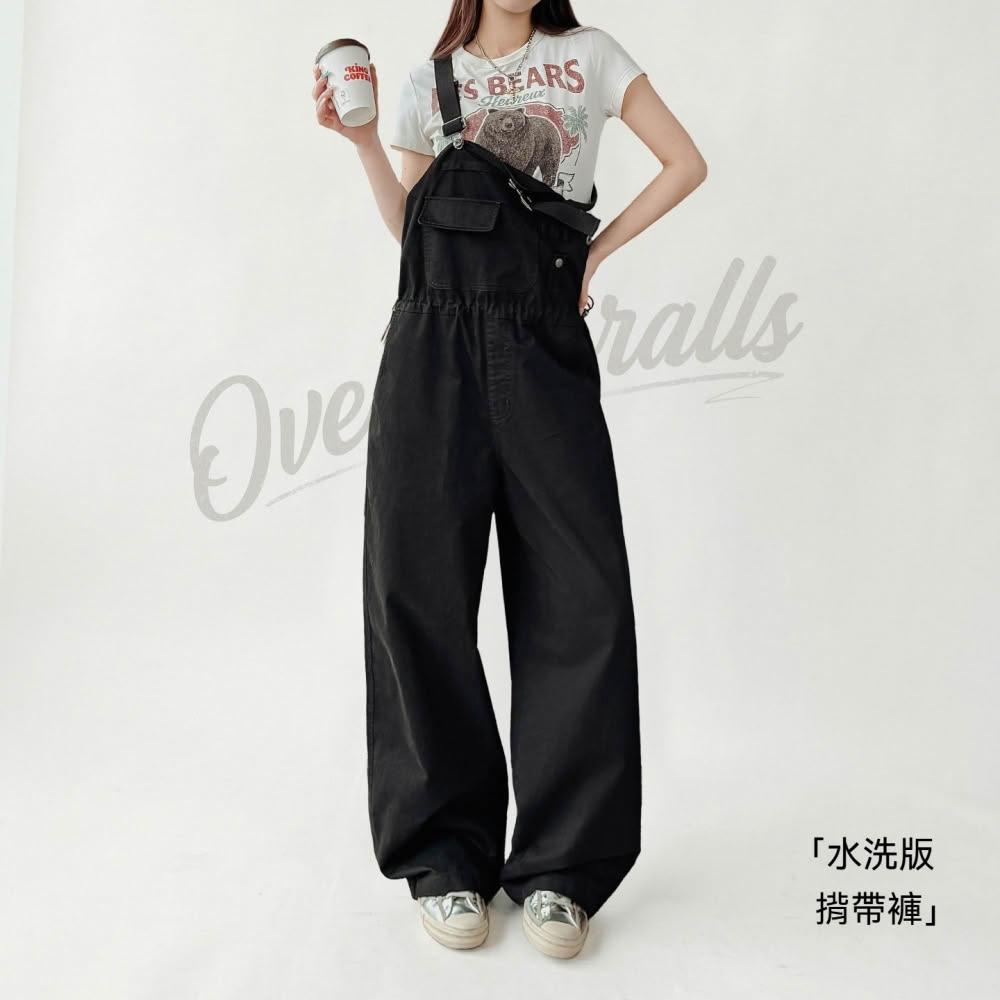 MAT RETRO美式黑色闊腿直筒工裝連體背帶褲顯瘦收腰純棉吊帶褲子女士春