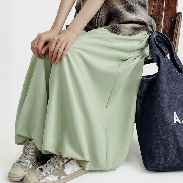 MAT RETRO桃皮絨垂感糯米花苞燈籠裙褲闊腿寬鬆緊腰抽繩休閒長褲子女春