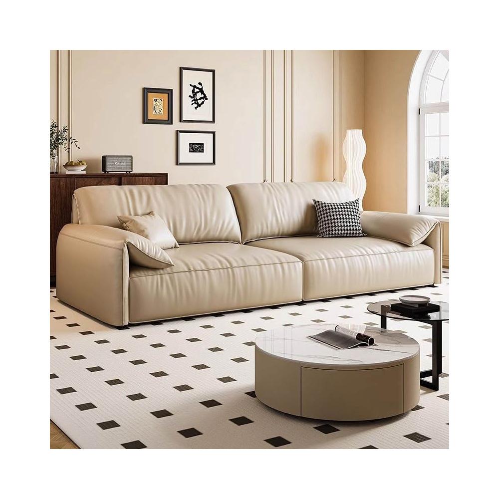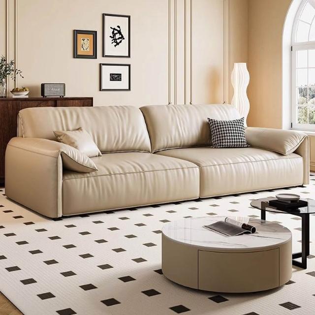 含稅/免運🔥頭層牛皮沙發丨全實木框架丨高回彈海綿乳膠填充丨多顏色多尺寸可選丨大象耳朵設計丨耐磨防水防刮丨PSF_0