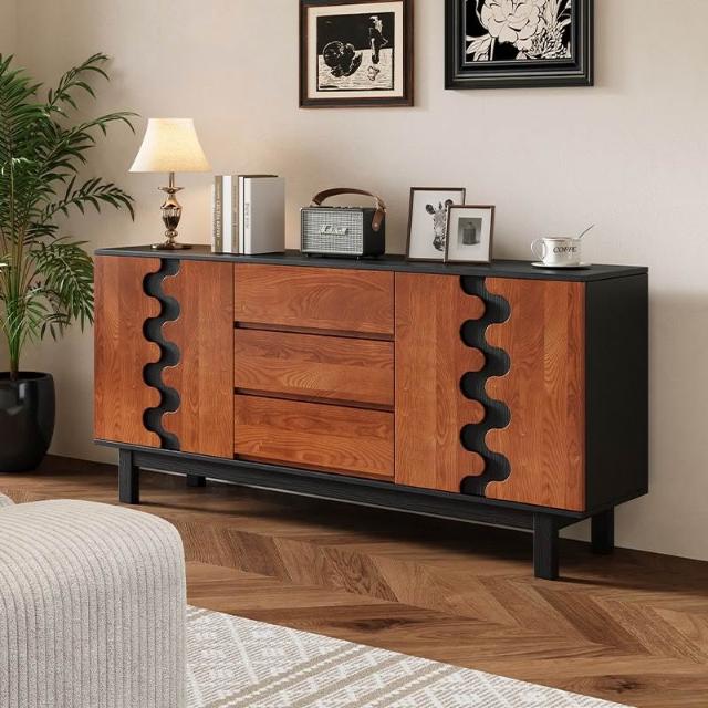含稅/免運🔥 整裝發貨丨中古風胡桃木實木電視櫃客廳靠牆收納多功能邊櫃 DSG-06