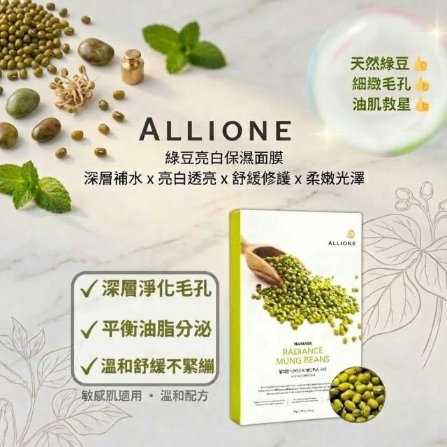 ALLIONE綠豆亮白面膜|保濕舒緩痘痘 敏感補水|深層修護