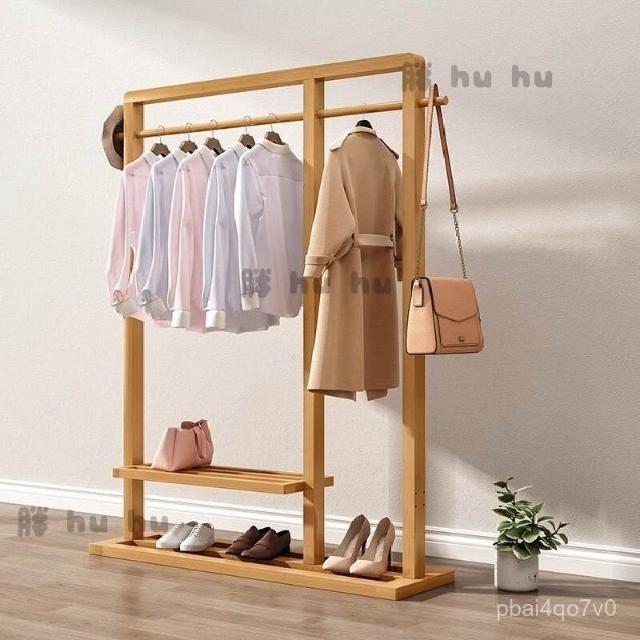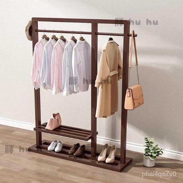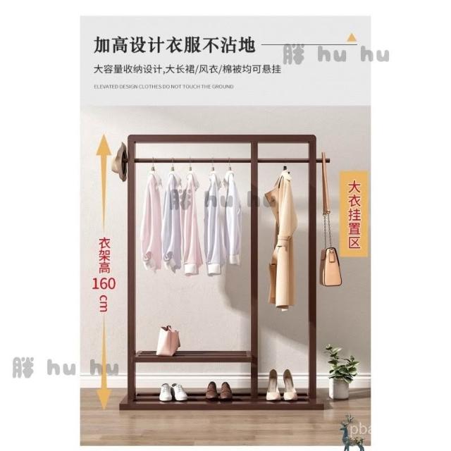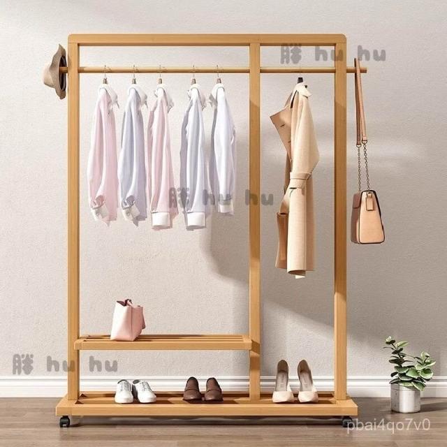 實木衣帽架衣架 掛衣架 家用落地臥室客廳簡約中式收納架子 現代帶輪