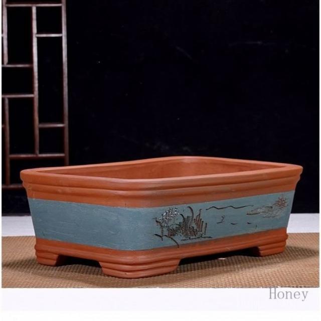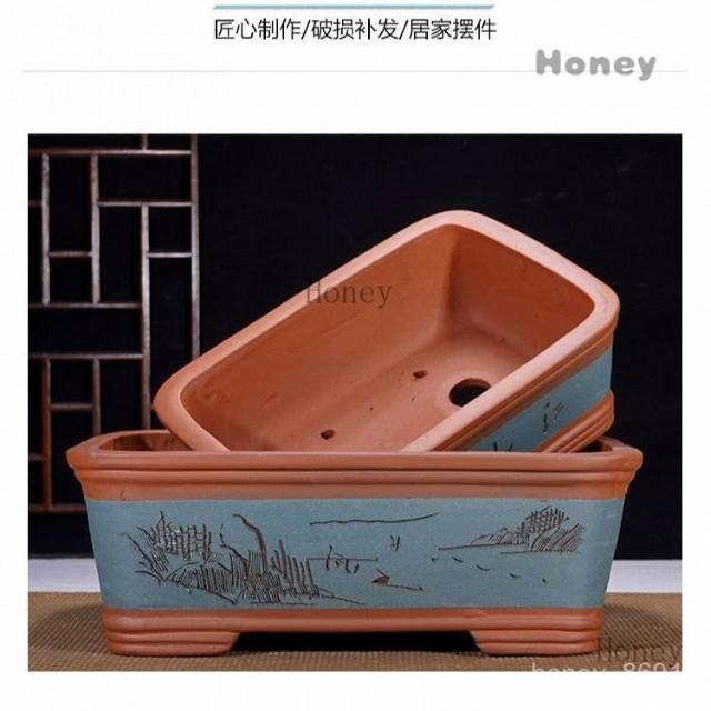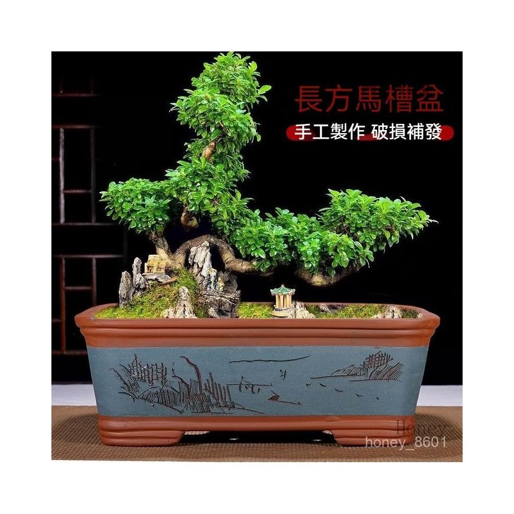 長方形紫砂花盆 大口徑種樹樁四方馬槽盆 純手工製作種樹盆景盆
