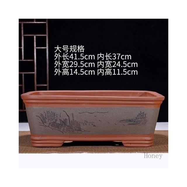 長方形紫砂花盆 大口徑種樹樁四方馬槽盆 純手工製作種樹盆景盆