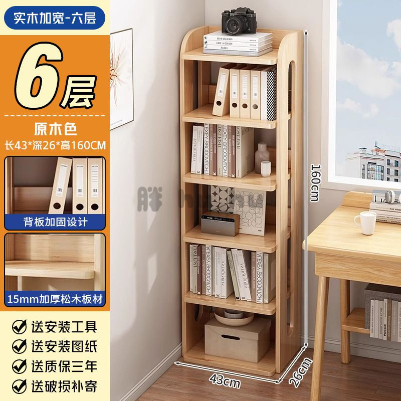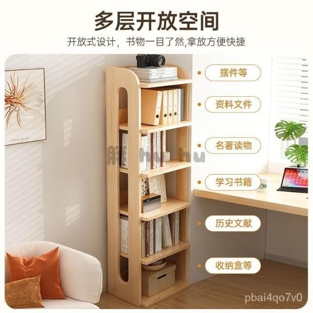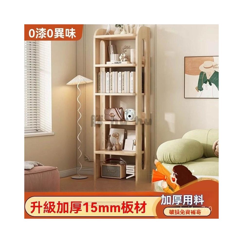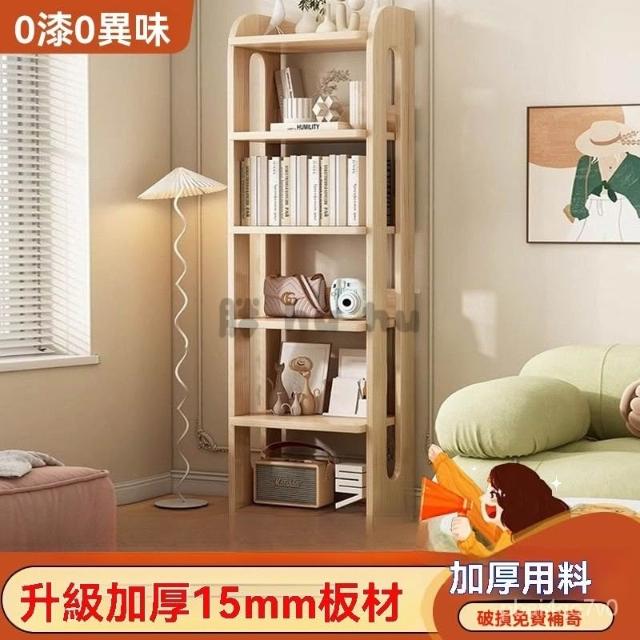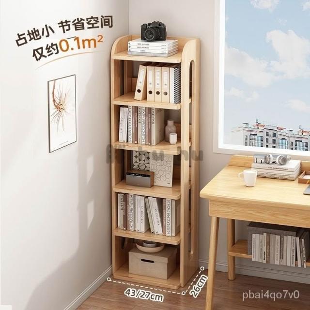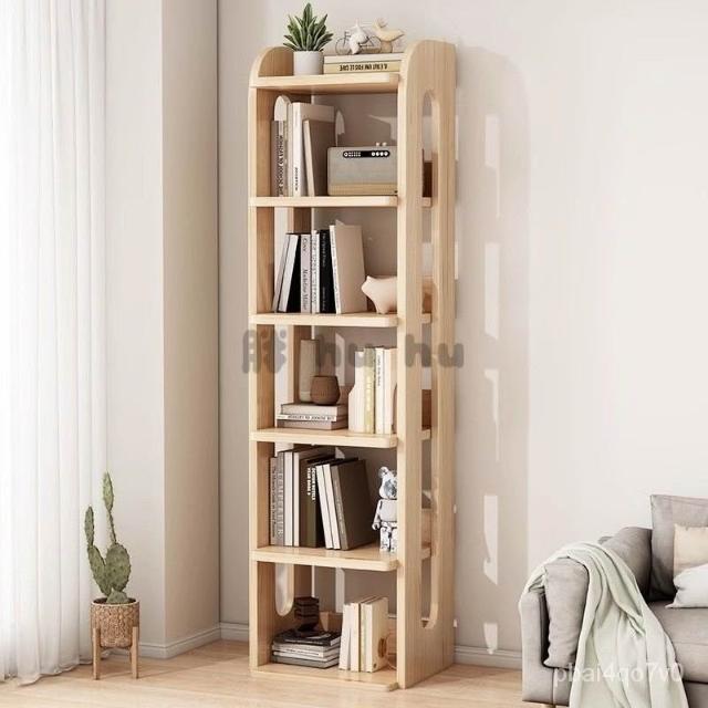 實木書架 簡易書櫃 兒童臥室一體墻角儲物櫃 多層窄櫃 客廳落地置物架