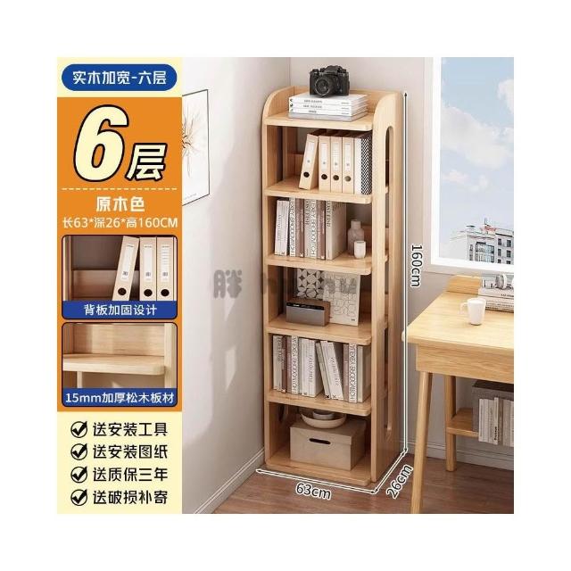 實木書架 簡易書櫃 兒童臥室一體墻角儲物櫃 多層窄櫃 客廳落地置物架