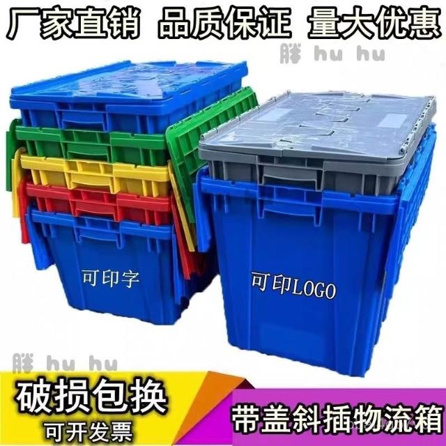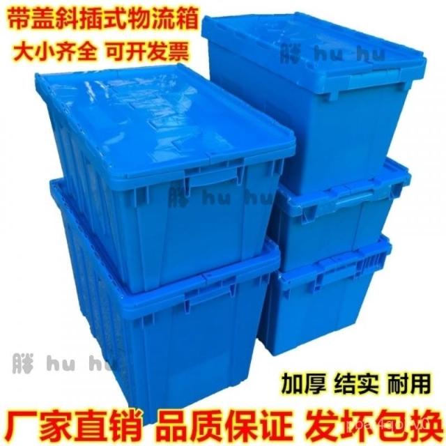 加厚帶蓋週轉箱 斜插式 物流箱 超市配送箱 特大號 儲物箱 長方形收納箱
