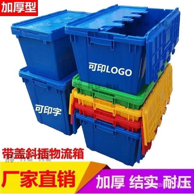 加厚帶蓋週轉箱 斜插式 物流箱 超市配送箱 特大號 儲物箱 長方形收納箱