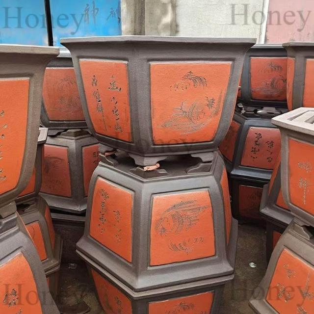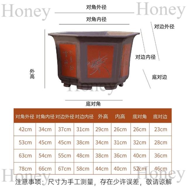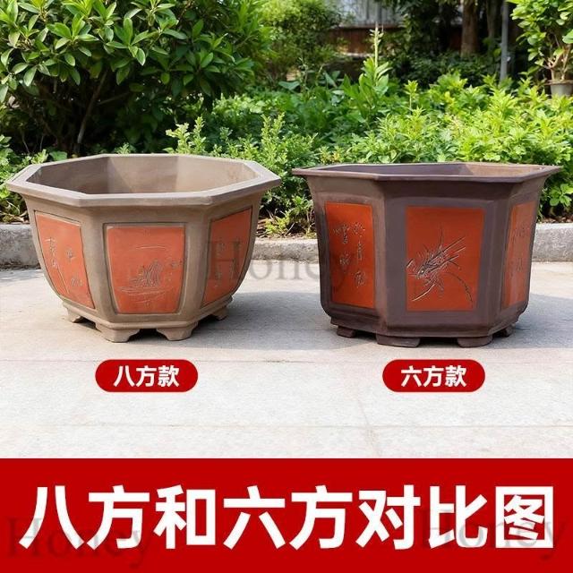 超大花盆陶瓷 家用紫砂花盆 戶外庭院特大號口徑六角花盆六方盆景盆