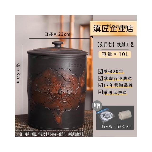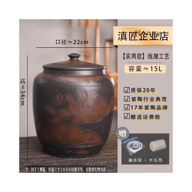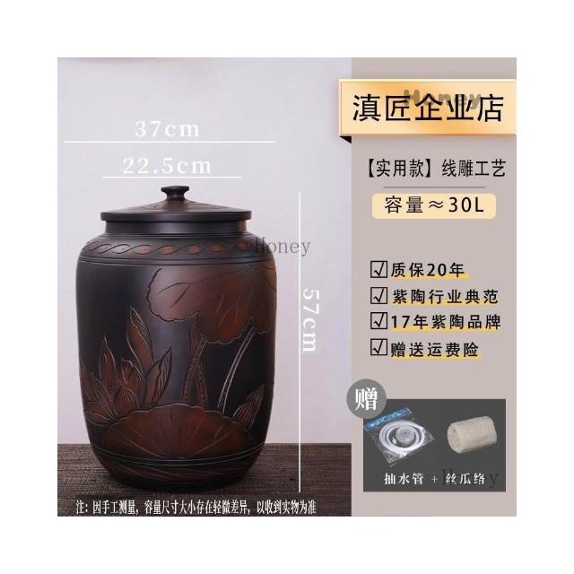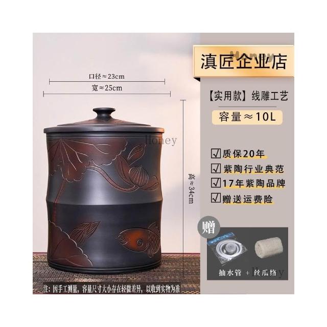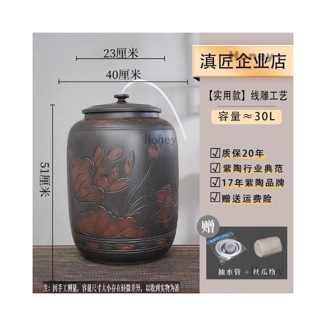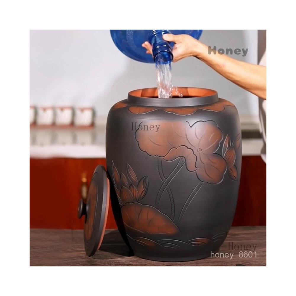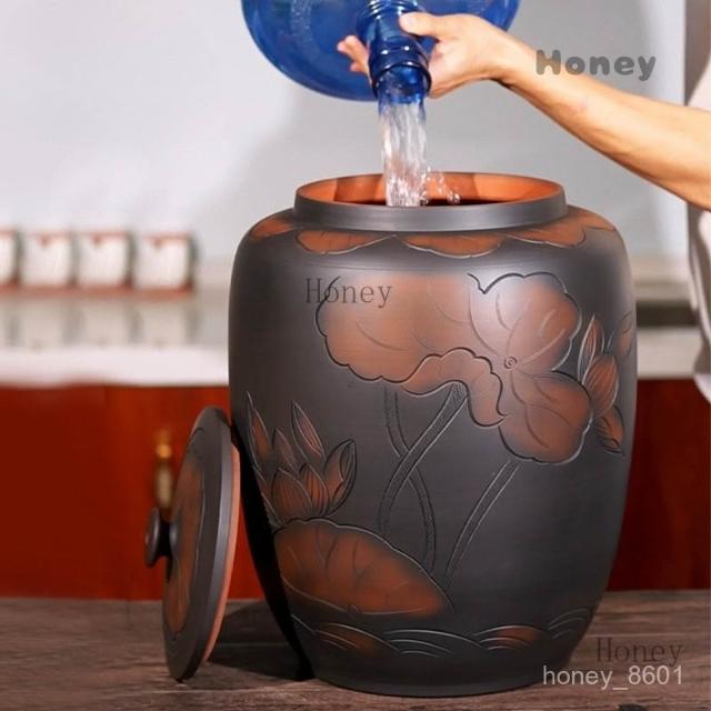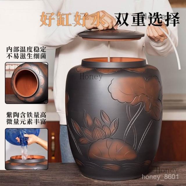 建水紫陶水缸 家用儲水陶瓷純凈水桶 中式茶道泡茶桌