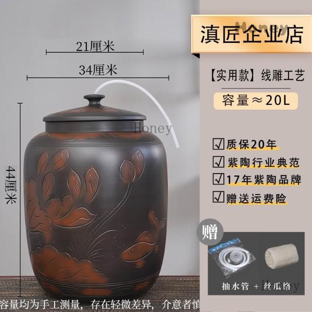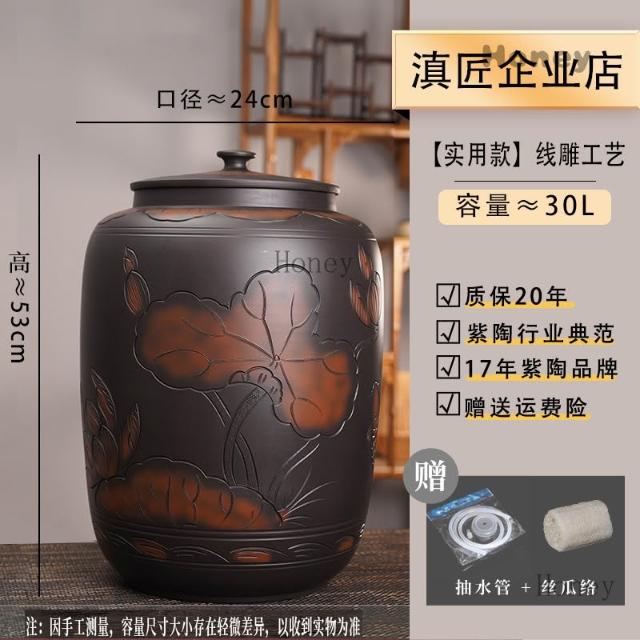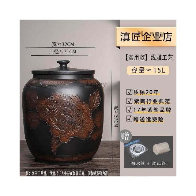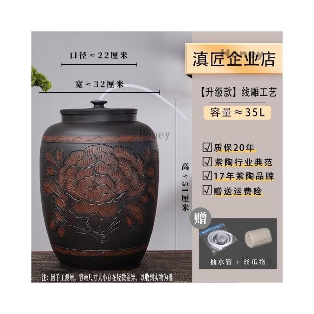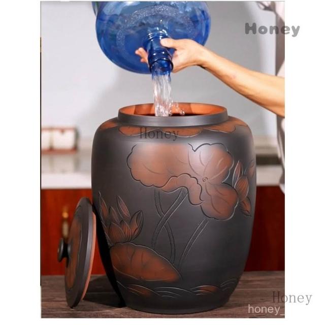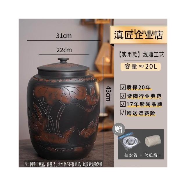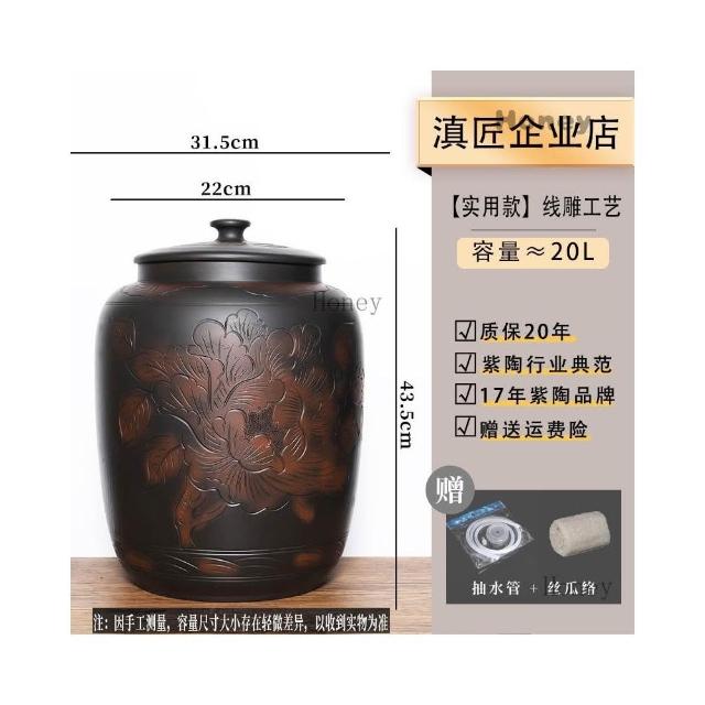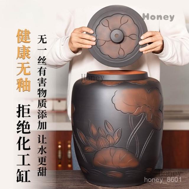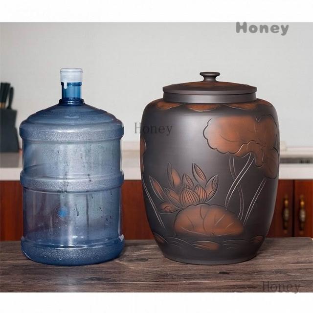 建水紫陶水缸 家用儲水陶瓷純凈水桶 中式茶道泡茶桌