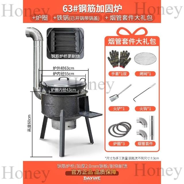 老式柴火灶家用燒木柴新款農村地鍋 可移動柴爐大鐵鍋戶外野營柴爐