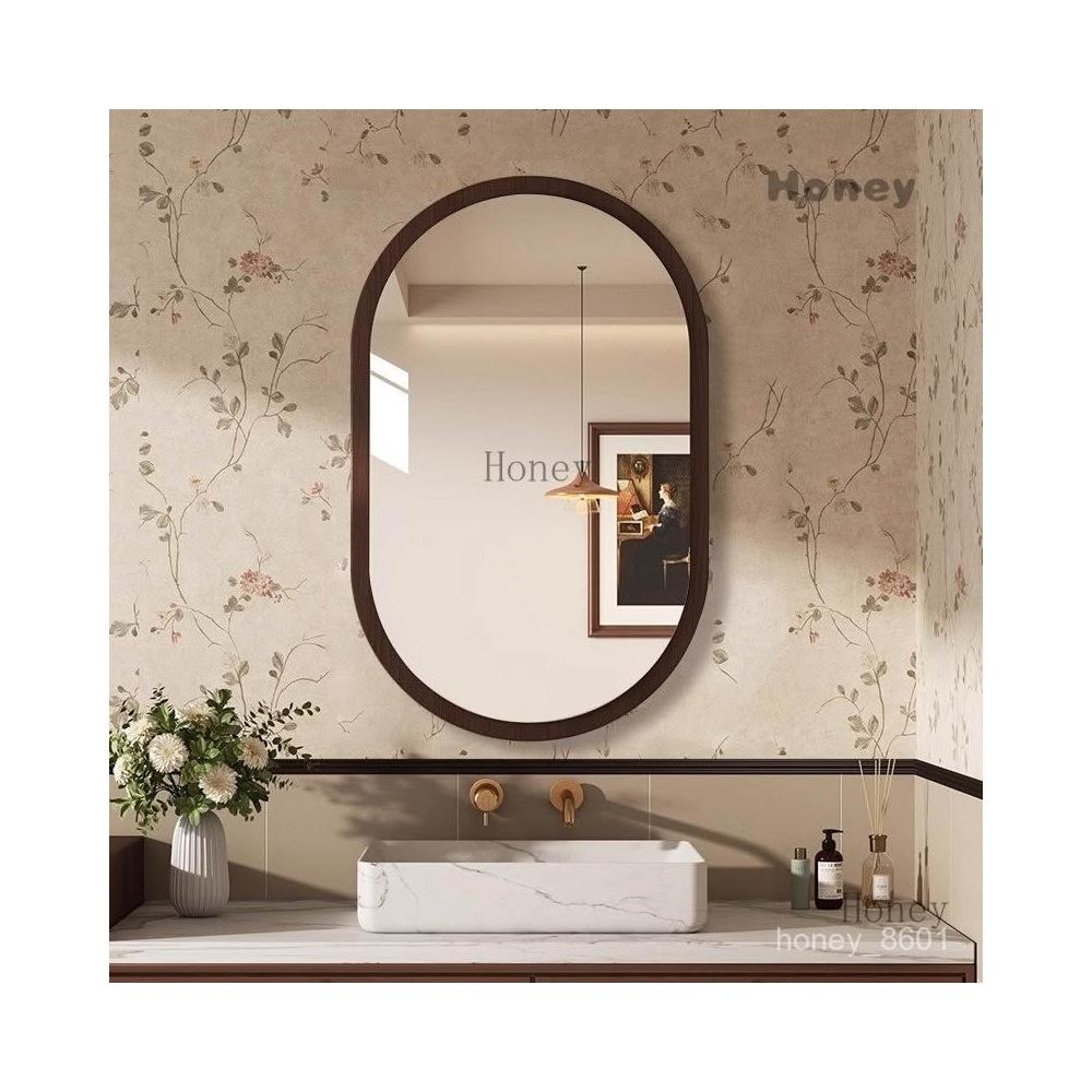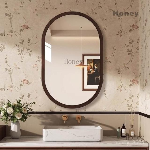 高級感中古浴室鏡子貼墻自粘衛生間洗手盆前鏡複古異形掛墻化妝鏡