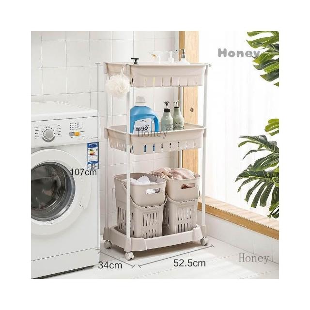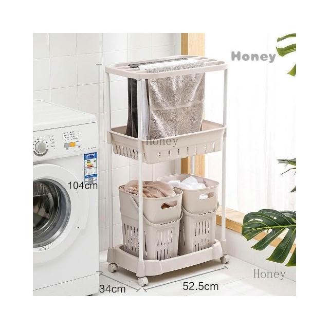 臟衣籃 衣服收納筐簍 塑料洗衣籃子 家用衛生間衣婁桶 藍框浴室置物架