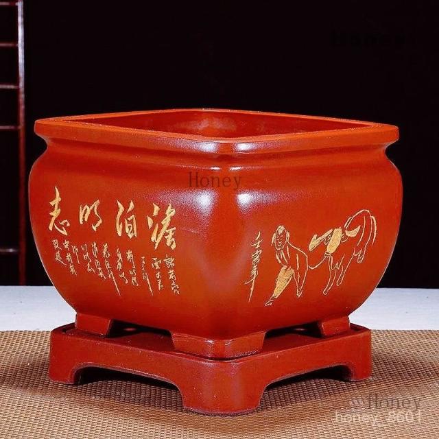紫砂四方大號花盆 古典室內陽臺蘭花方盆 大口徑四方陶瓷盆景盆