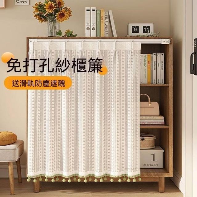 櫃子遮擋簾子 免打孔衣櫃鞋櫃書架置物架櫥櫃短防塵紗簾 雜物遮醜簾