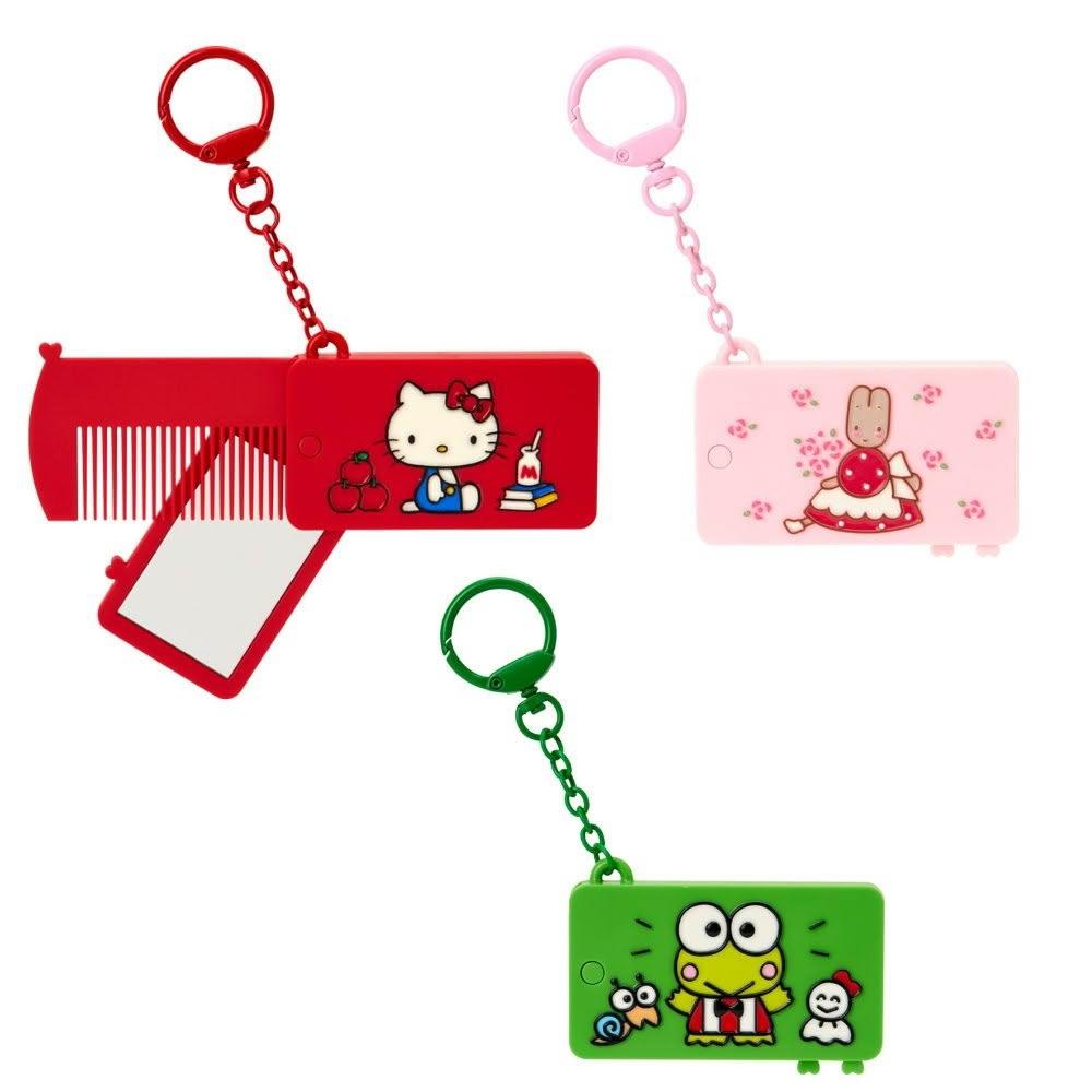 SANRIO 三麗鷗asdfkitty*KITTY 大眼蛙 茉莉兔 隨身鏡子梳子鑰匙圈-日本正版商品