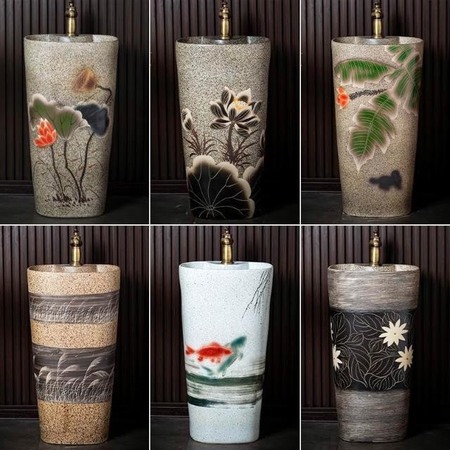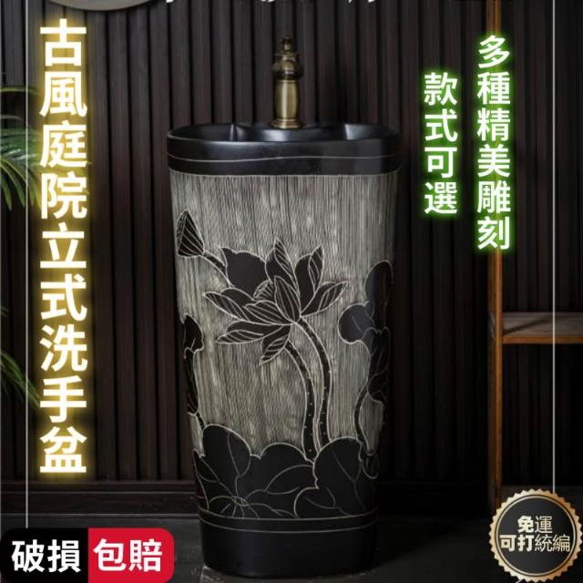 庭院洗手台 國風洗手臺 中式複古洗手臺 陶瓷立式洗臉盆 客棧庭院洗手盆 戶外陽臺立柱盆 一體落地式洗手盆 洗手盆