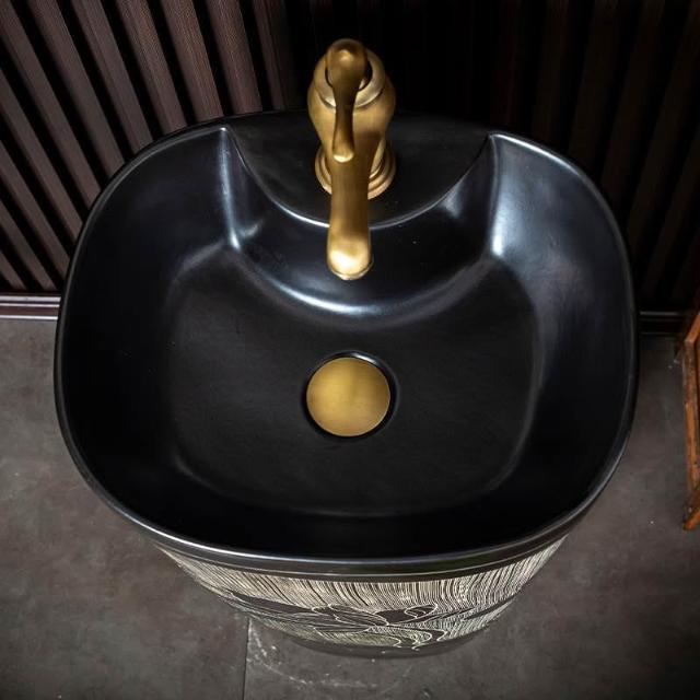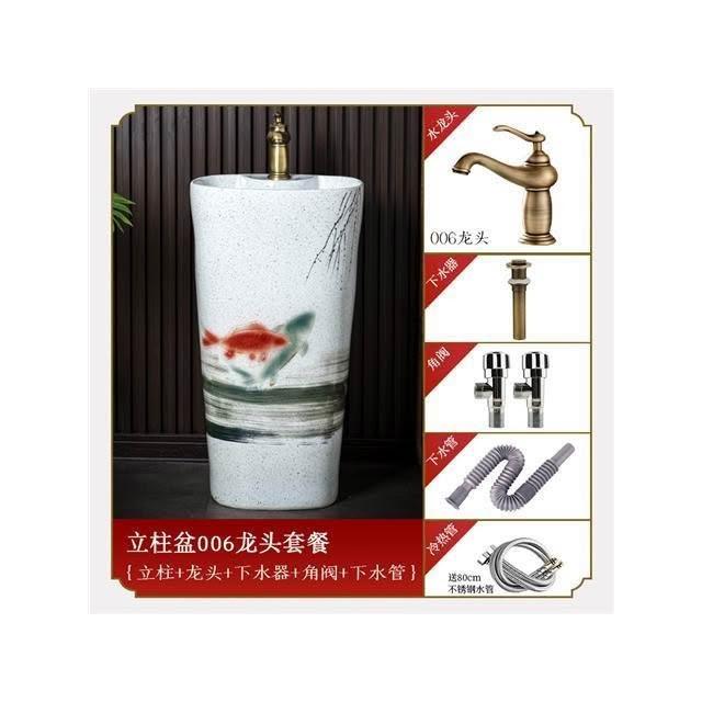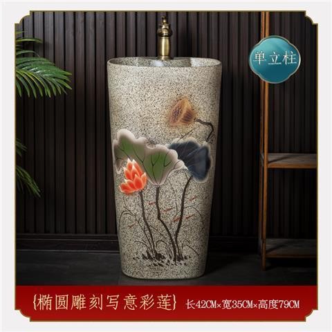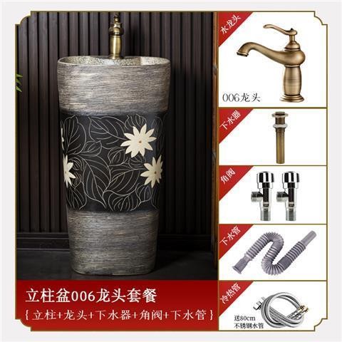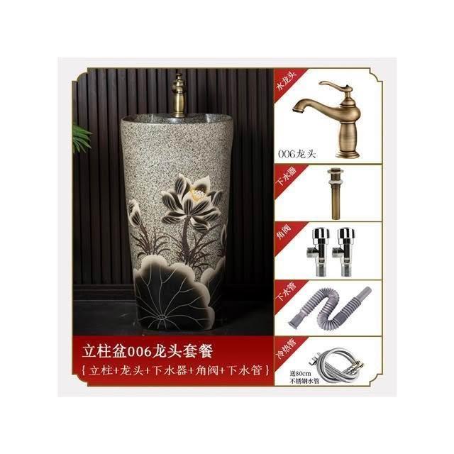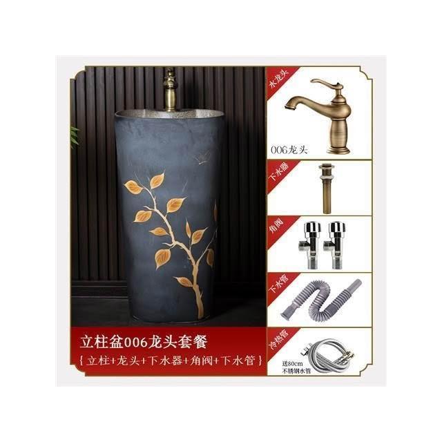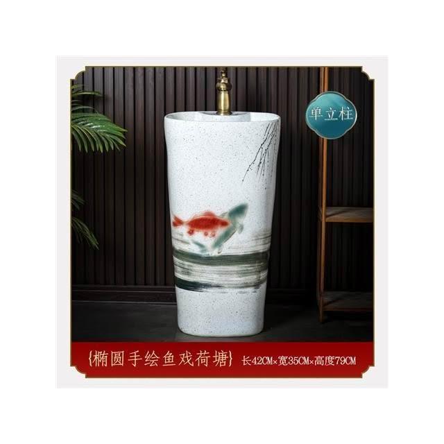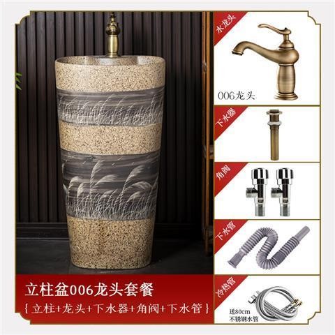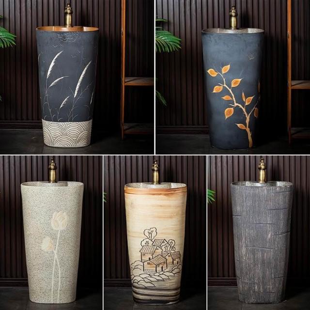 庭院洗手台 國風洗手臺 中式複古洗手臺 陶瓷立式洗臉盆 客棧庭院洗手盆 戶外陽臺立柱盆 一體落地式洗手盆 洗手盆