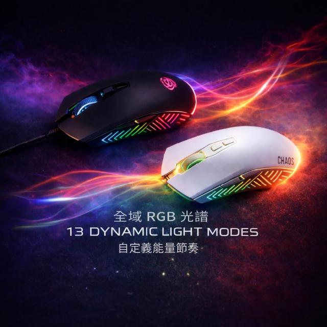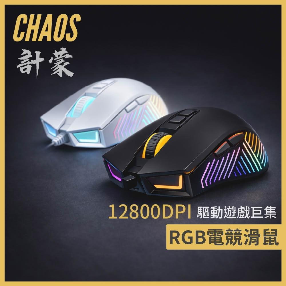 CHAOS 混元計蒙 有線電競滑鼠 12800DPI 1000Hz RGB 抗指紋塗層 可編程驅動巨集 人體工學