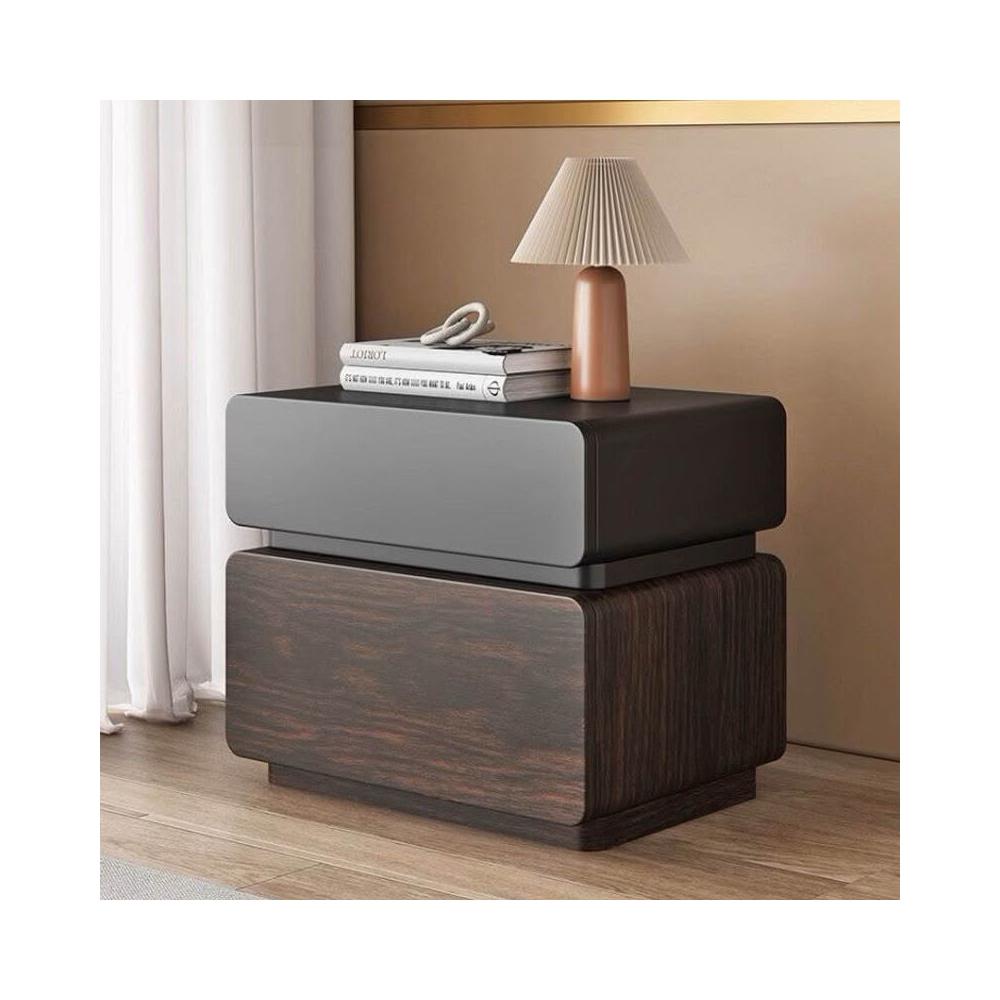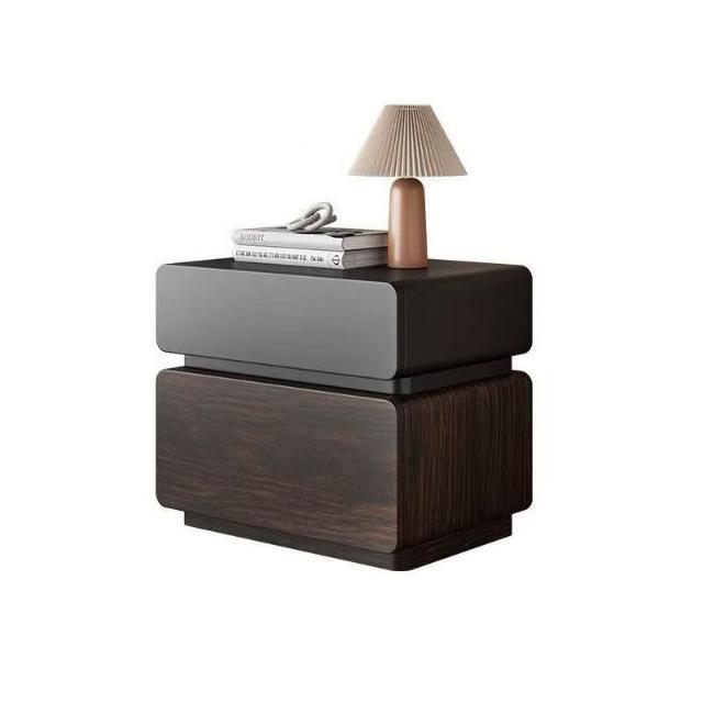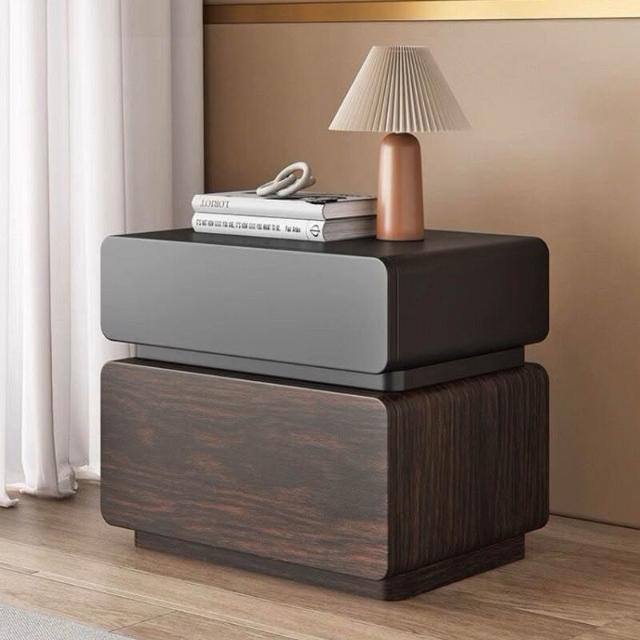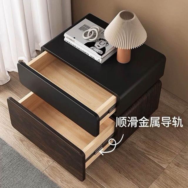 優選傢俱 免運費 意式極簡實木中古風床頭櫃家用臥室黑色輕奢高級感床邊收納儲物櫃