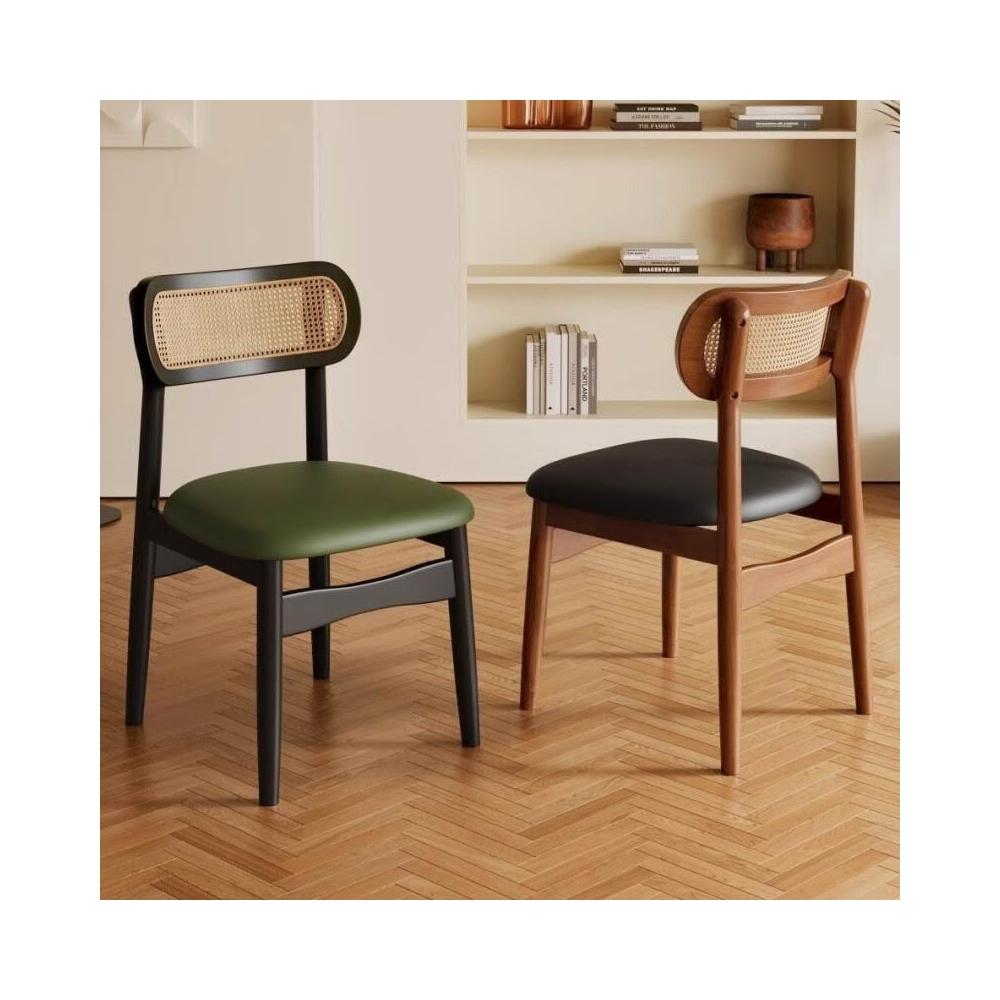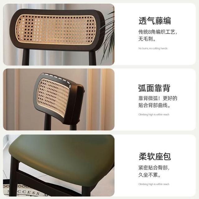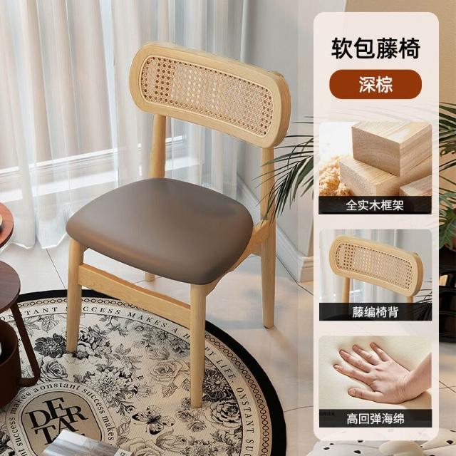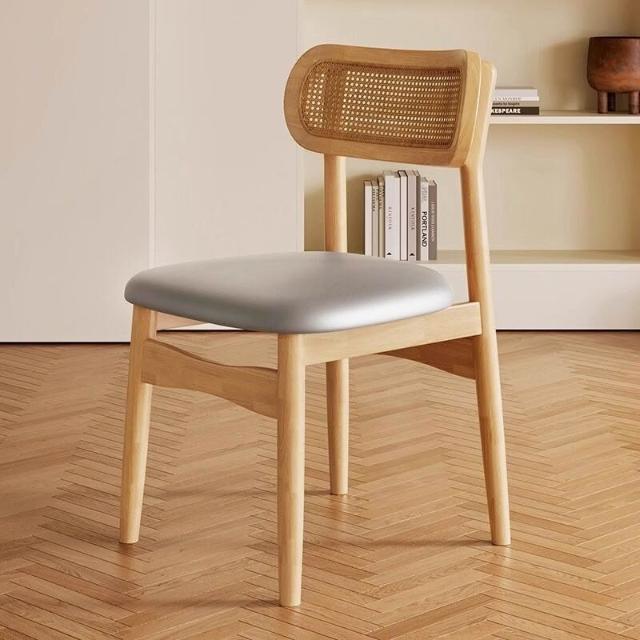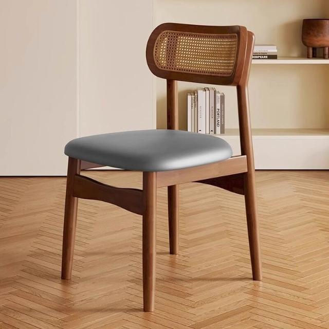 優選傢俱 免運費 實木餐椅家用北歐中古風藤編椅子靠背椅餐廳吃飯餐桌椅凳子休閑椅