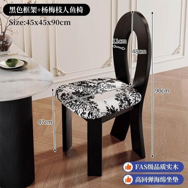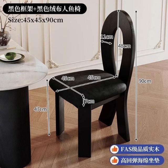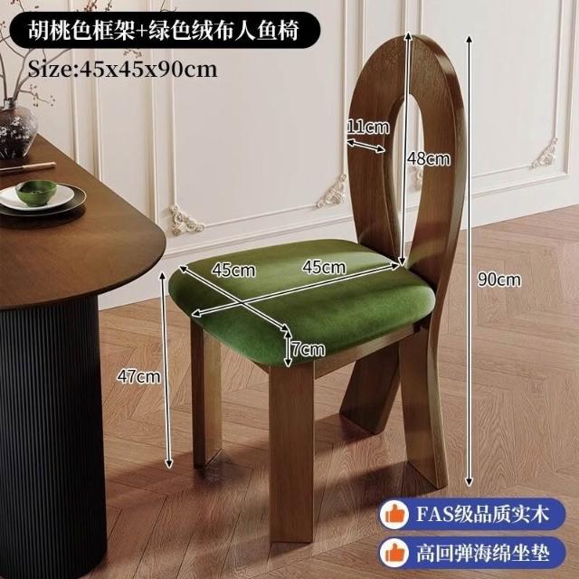 優選傢俱 免運費 法式復古實木餐椅家用餐桌椅子中古風設計師人魚鑰匙椅靠背椅凳子