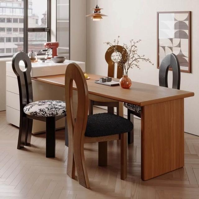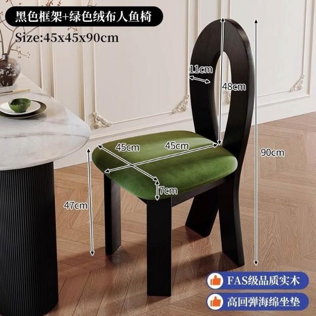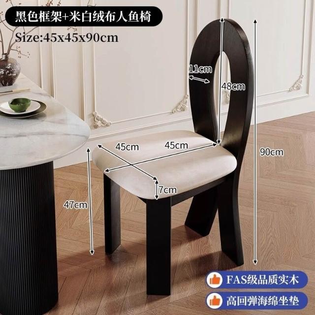 優選傢俱 免運費 法式復古實木餐椅家用餐桌椅子中古風設計師人魚鑰匙椅靠背椅凳子
