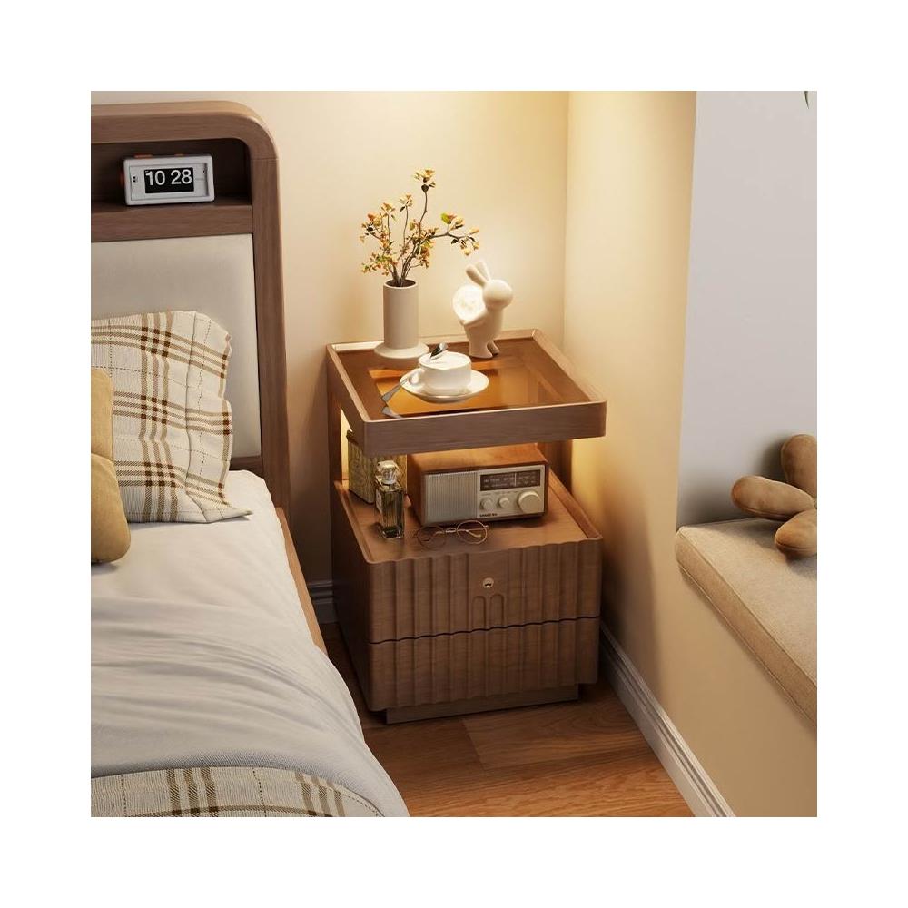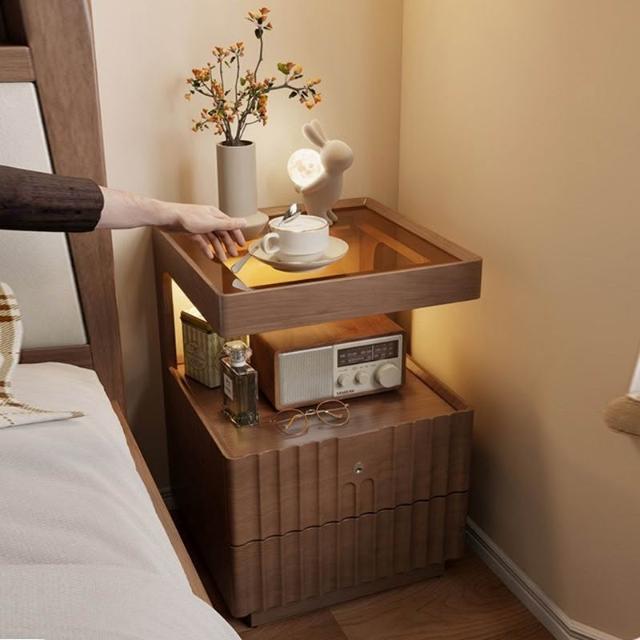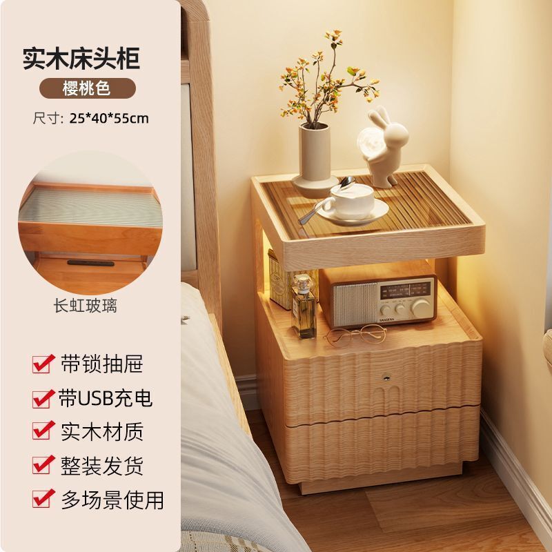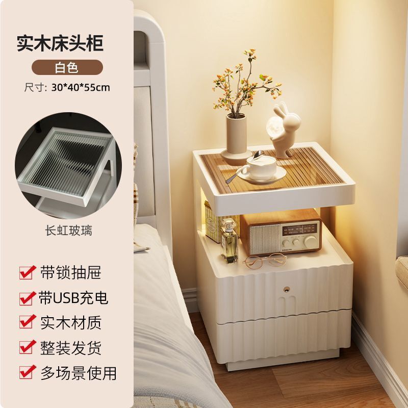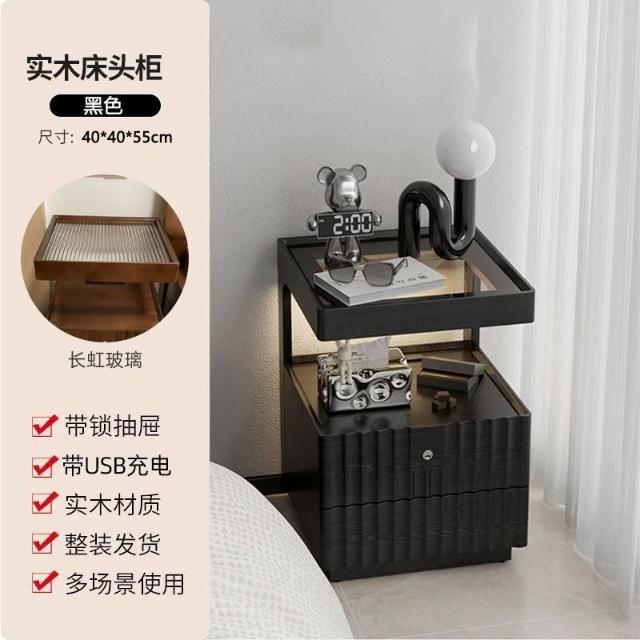 優選傢俱 免運費 實木床頭櫃簡約現代家用臥室帶鎖儲物櫃小型床邊置物架簡易收納櫃