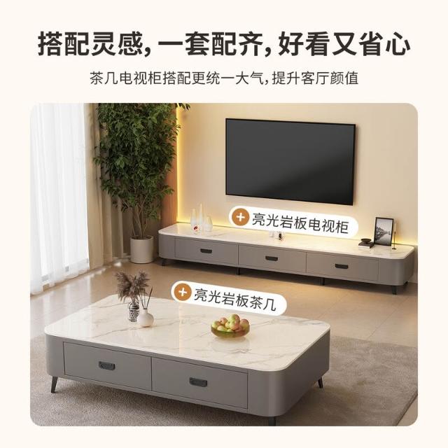 優選傢俱 免運費 巖板電視櫃客廳家用小戶型輕奢高級感現代簡約落地茶幾電視櫃組合