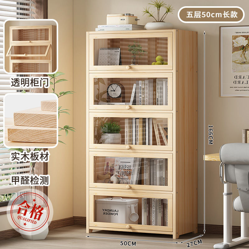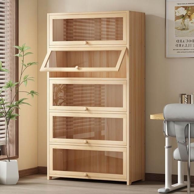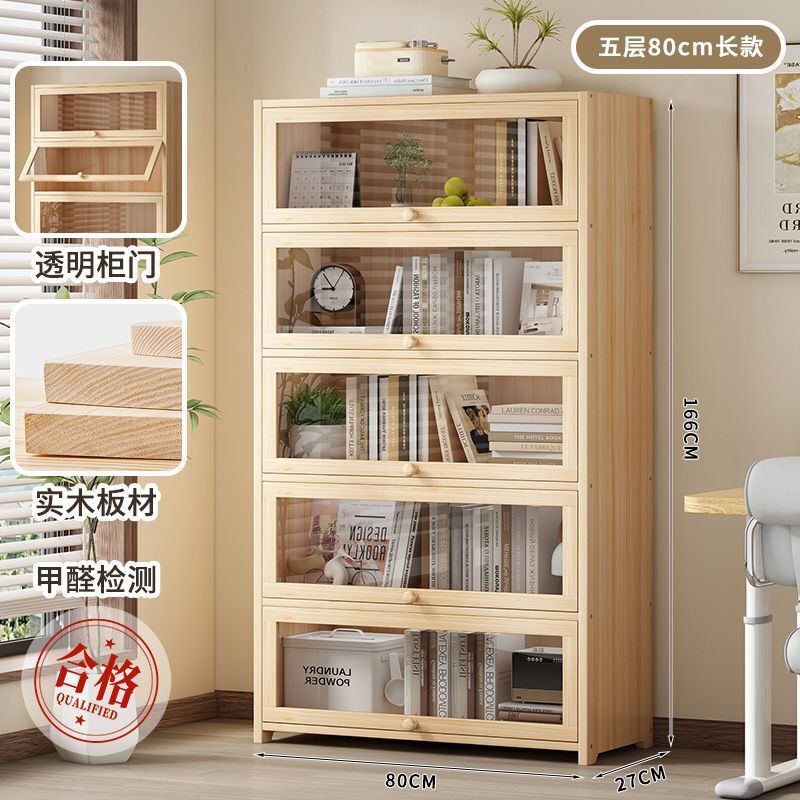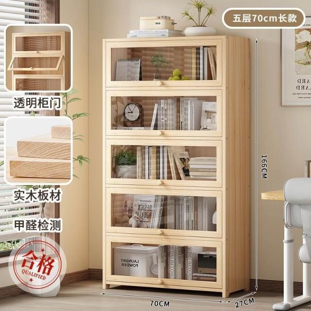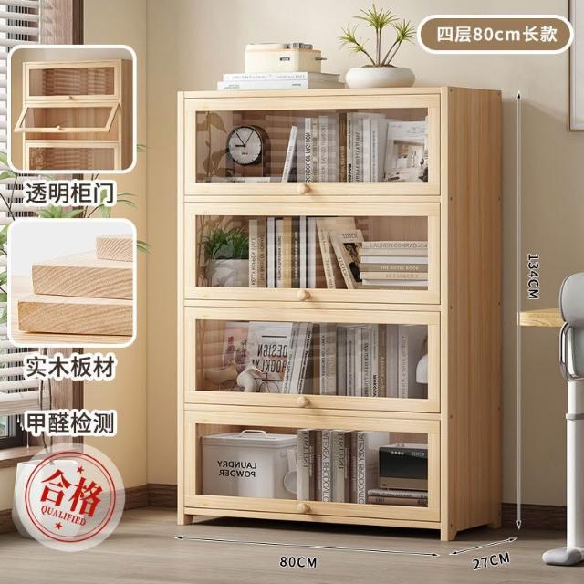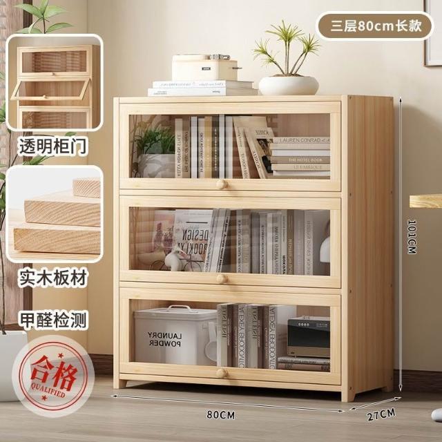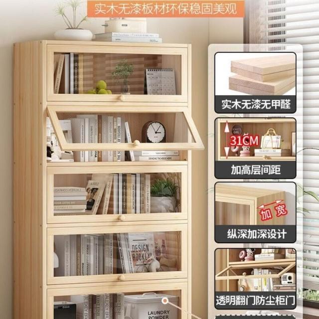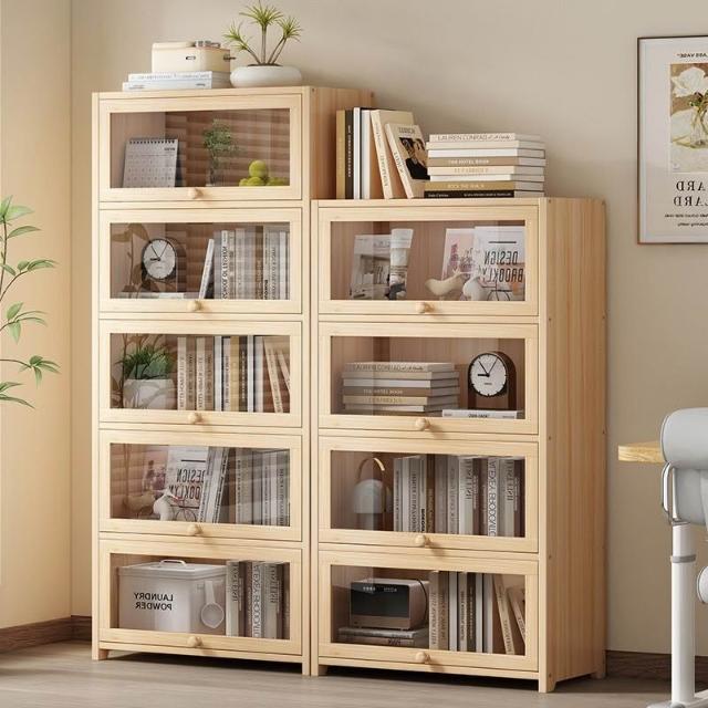 優選傢俱 免運費 實木無漆書櫃現代防塵書架落地玻璃門透明展示櫃客廳置物架子