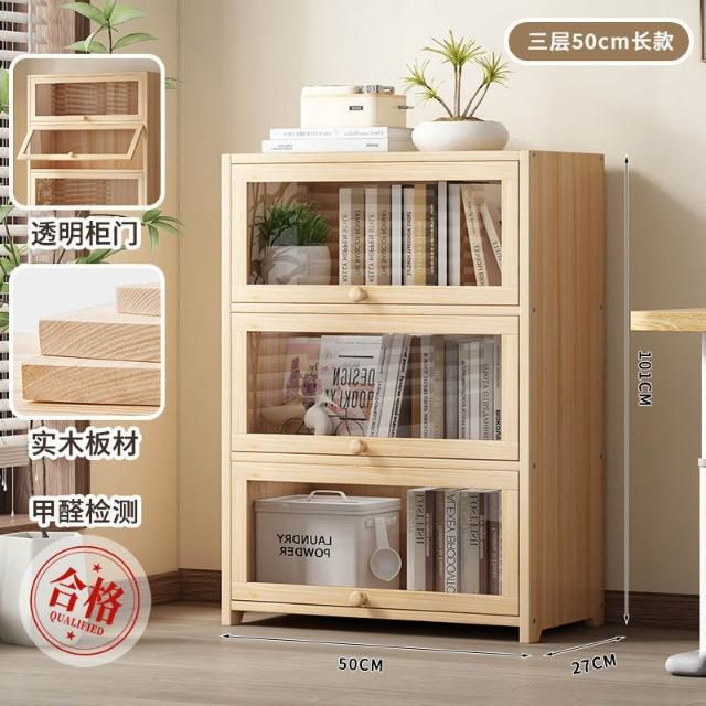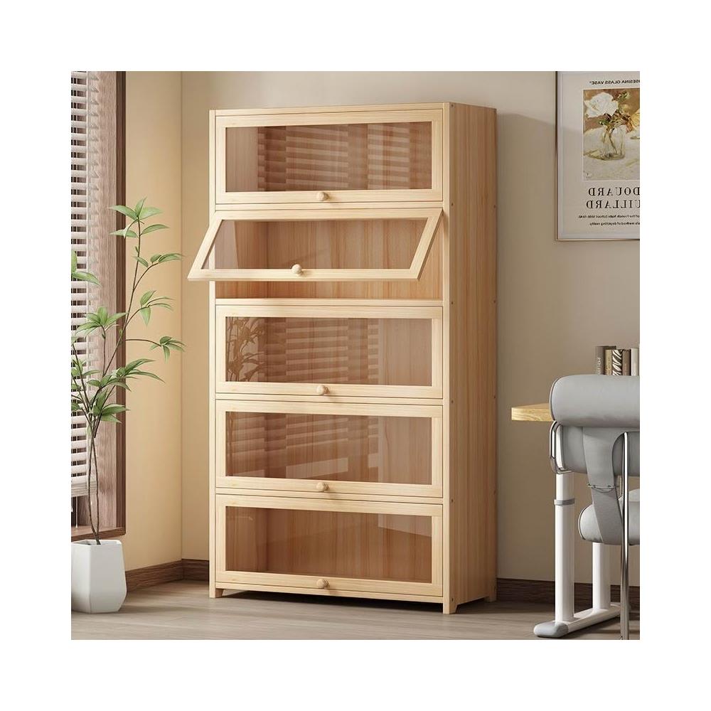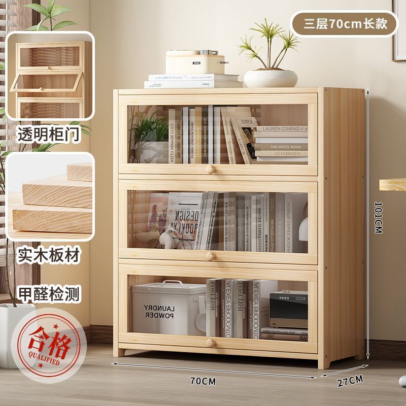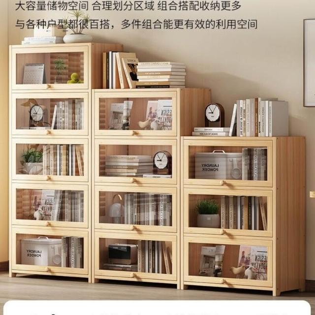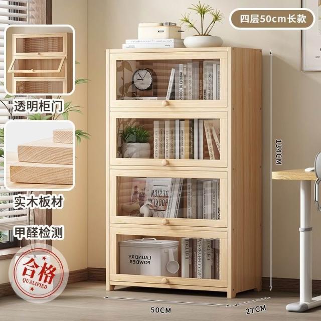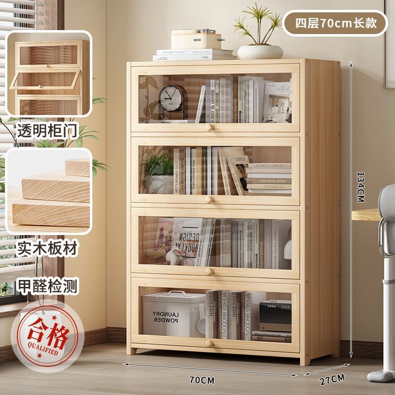 優選傢俱 免運費 實木無漆書櫃現代防塵書架落地玻璃門透明展示櫃客廳置物架子
