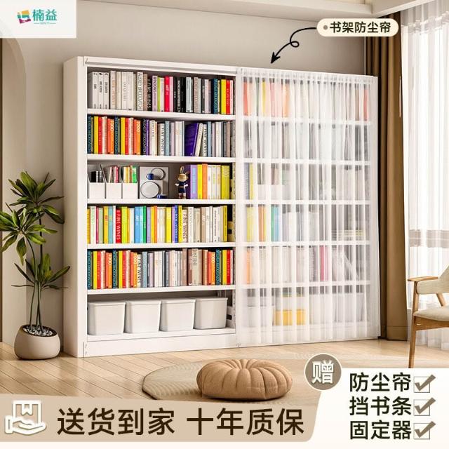 優選傢俱 免運費 楠益書架帶防塵簾圖書館繪本書籍收納架落地書房多層紗簾鋼製書櫃