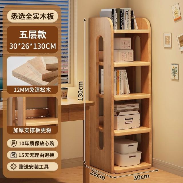 優選傢俱 免運費 實木書架一體靠墻落地置物架客廳轉角儲物櫃繪本架簡易格子櫃