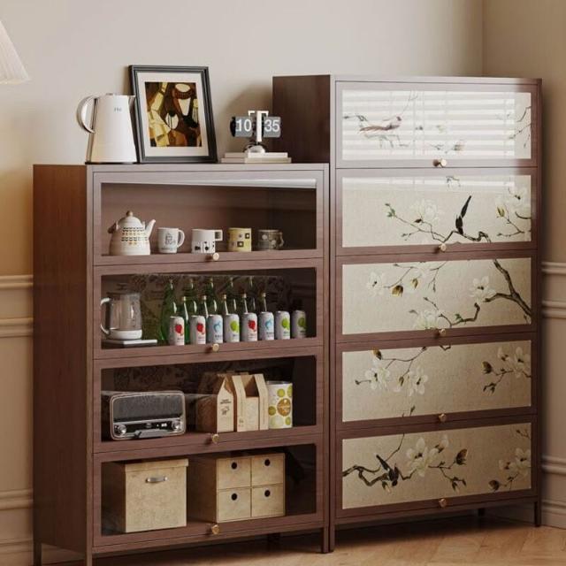 優選傢俱 免運費 萊特家居鐵藝書房書櫃中古風成品櫃儲物櫃仿玻璃門展示收納櫃